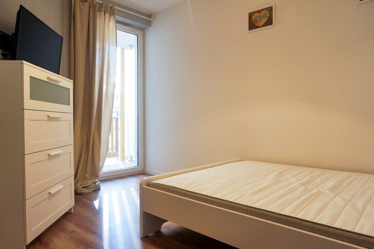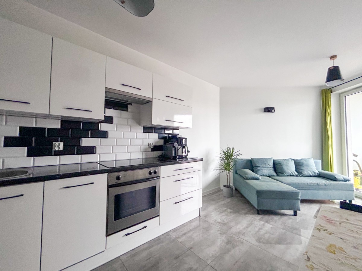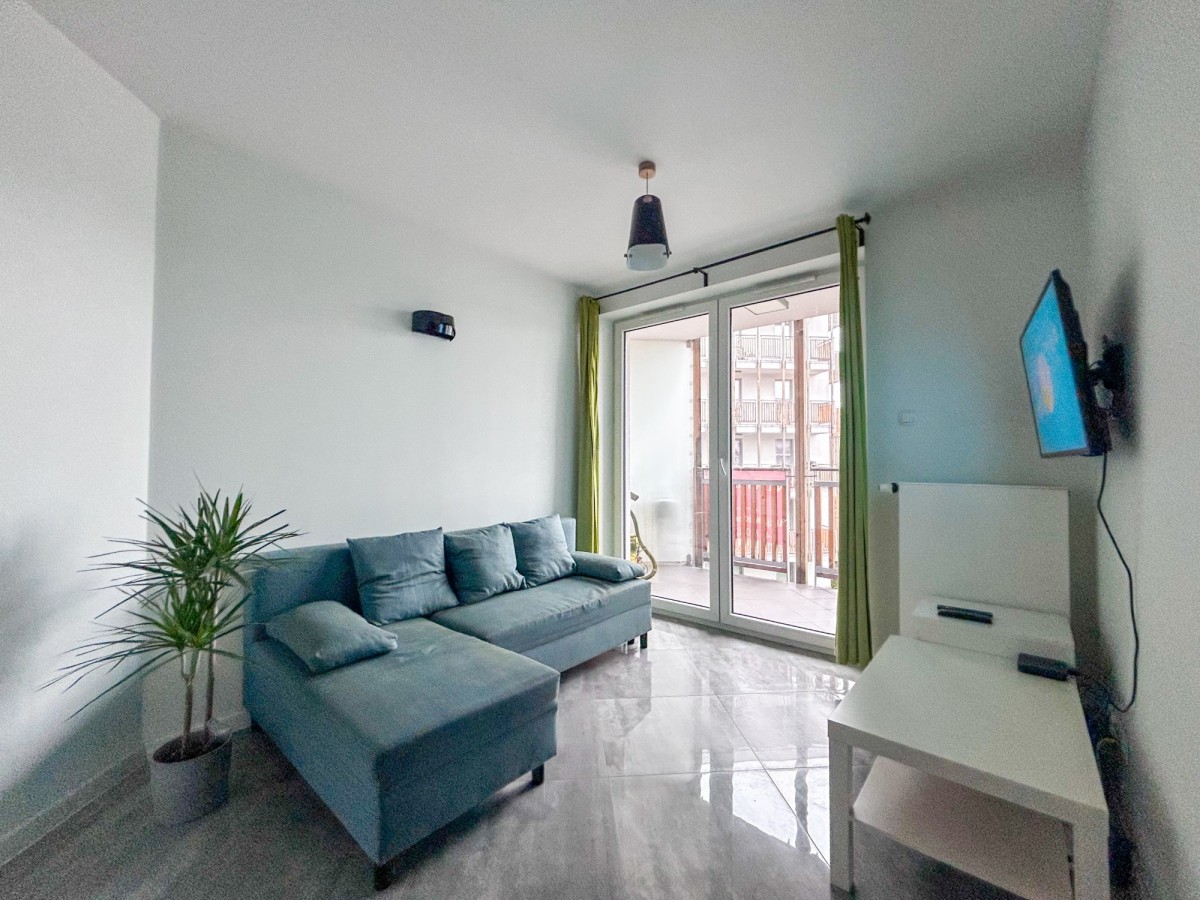 Mieszkanie znajduje się na drugim piętrze nowoczesnego budynku. Nieruchomość jest jasna i przestronna, wykończona w wysokim standardzie. Składa się z sypialni, salonu z aneksem kuchennym i balkonem oraz łazienki. W skład wyposażenia wchodzą: piekarnik, płyta, lodówka, zmywarka, odkurzacz, żelazko, mikrofalówka, krajalnica do chleba, drobne wyposażenie kuchni, dwa telewizory, duża szafa w korytarzu oraz pralka. W łazience znajduje się zarówno prysznic jak i wanna .Istnieje możliwość podpięcia internetu i telewizji. Parkowanie przy ulicy, na terenie osiedla. Ogrzewanie miejskie.