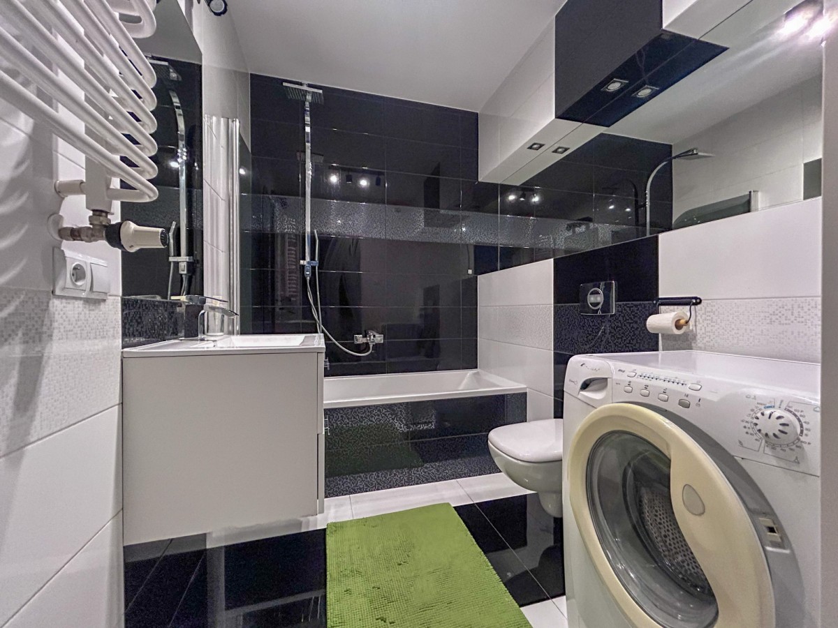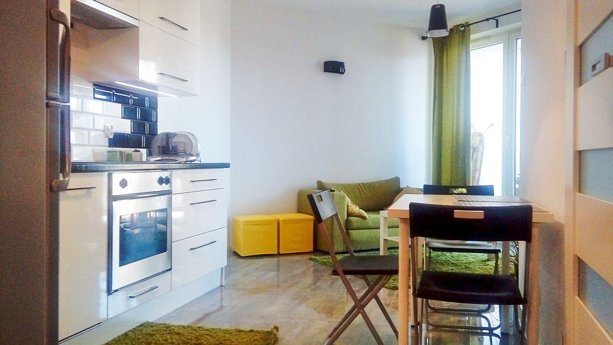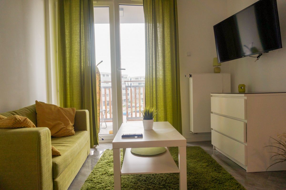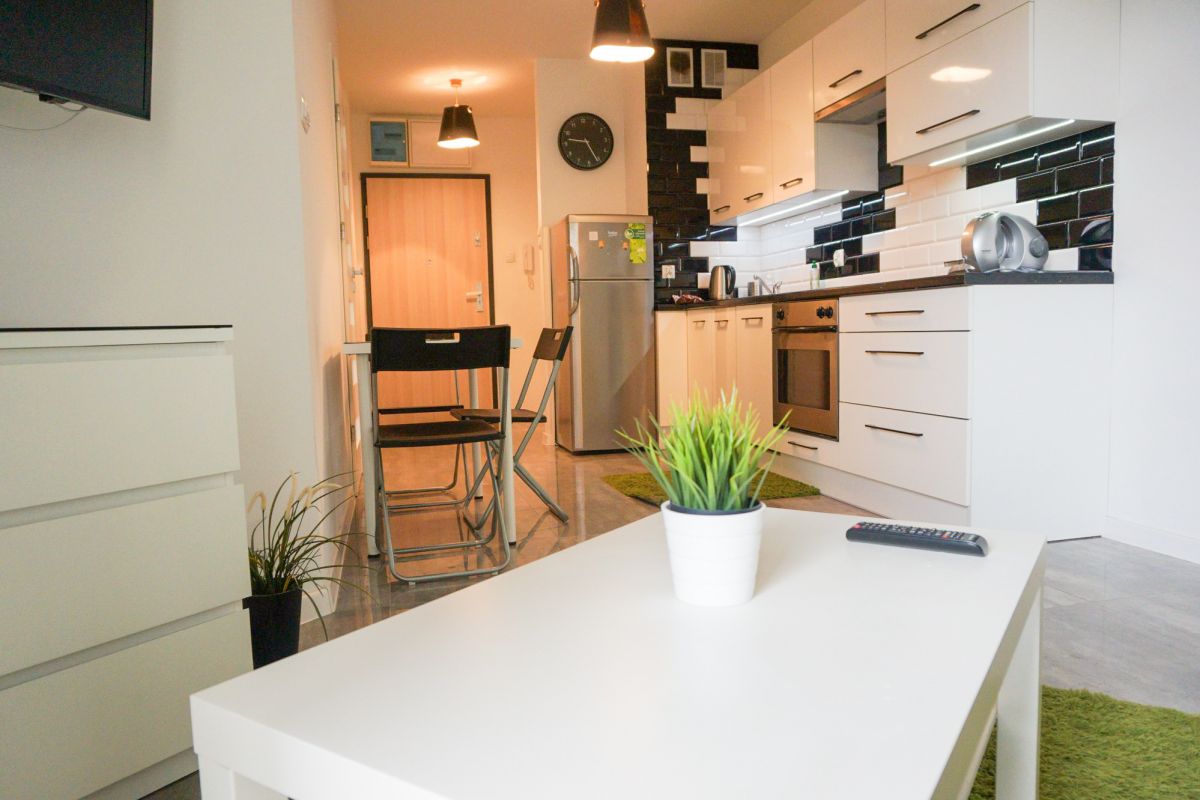 Mieszkanie znajduje się na drugim piętrze nowoczesnego budynku. Nieruchomość jest jasna i przestronna, wykończona w wysokim standardzie. Składa się z sypialni, salonu z aneksem kuchennym i balkonem oraz łazienki. W skład wyposażenia wchodzą: piekarnik, płyta, lodówka, zmywarka, odkurzacz, żelazko, mikrofalówka, krajalnica do chleba, drobne wyposażenie kuchni, dwa telewizory, duża szafa w korytarzu oraz pralka. W łazience znajduje się zarówno prysznic jak i wanna .Istnieje możliwość podpięcia internetu i telewizji. Parkowanie przy ulicy, na terenie osiedla. Ogrzewanie miejskie.