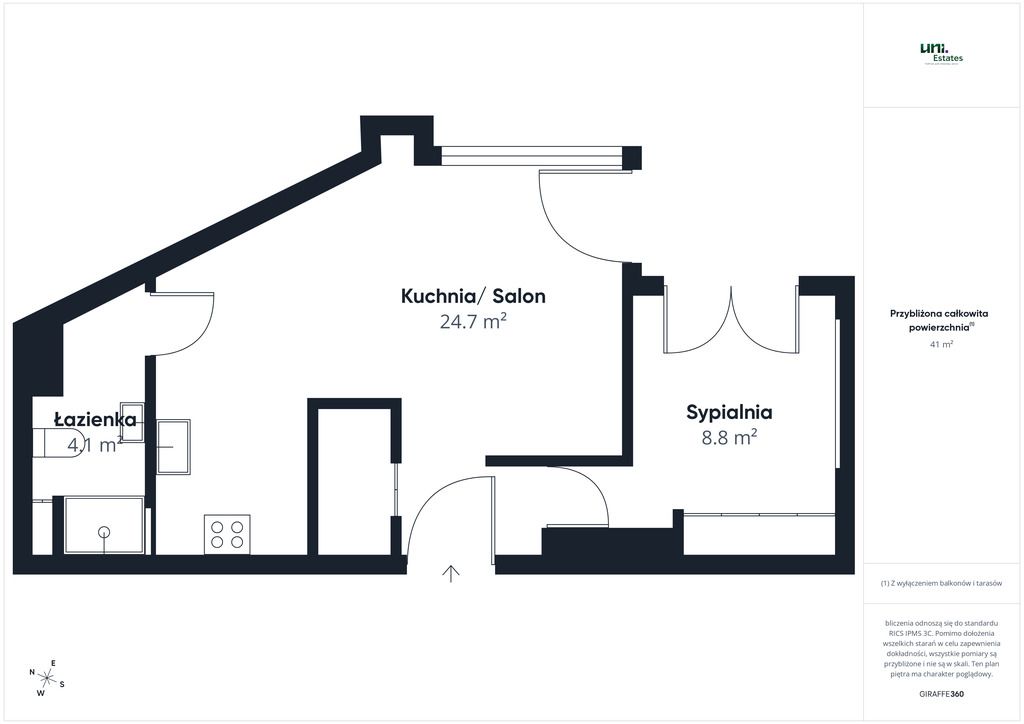 Przedstawione ogłoszenie ma charakter wyłącznie informacyjny i nie stanowi oferty w rozumieniu art. 66 par. 1 Kodeksu cywilnego. Biuro Nieruchomości dokłada starań, aby treść ogłoszeń była rzetelna i aktualna, jednak nie ponosi odpowiedzialności za ewentualne nieścisłości, błędy lub nieaktualność ogłoszeniaApartment with an area of
