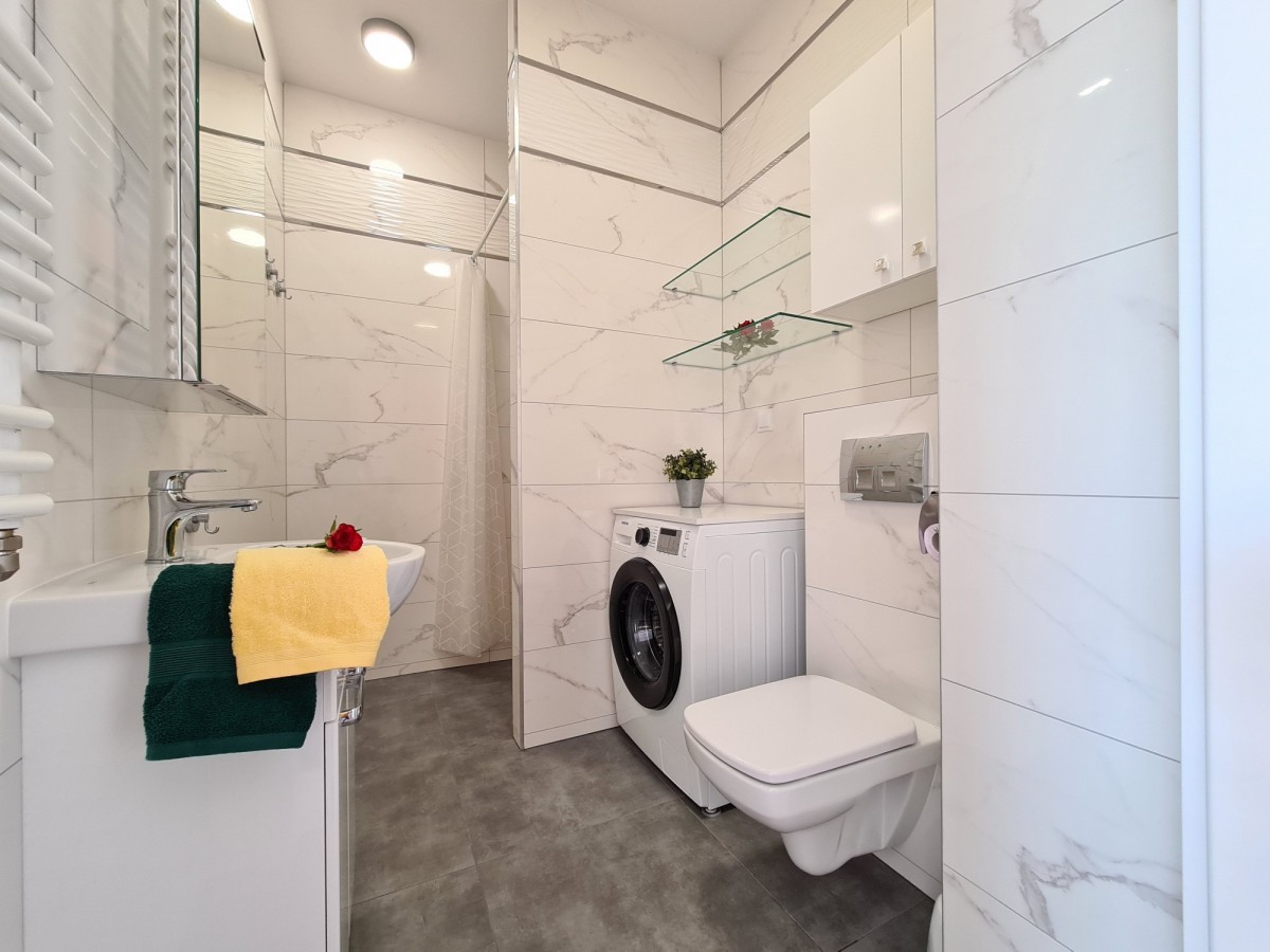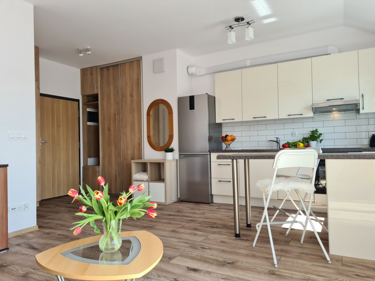 Mieszkanie to nowoczesna kawalerka o powierzchni 32 m2, w pełni umeblowana i gotowa do natychmiastowego zamieszkania. Znajduje się na 4. piętrze w nowym 4-piętrowym bloku z windą, wybudowanym w 2022 roku. Dodatkowo, mieszkanie posiada przynależne miejsce parkingowe na parkingu przed budynkiem. Okna kawalerki wychodzą na południowy zachód, a budynek jest wyposażony w wózkarnię. Dla dodatkowej ochrony, na wjeździe do bloku zainstalowana jest barierka ograniczająca wjazd osób postronnych.