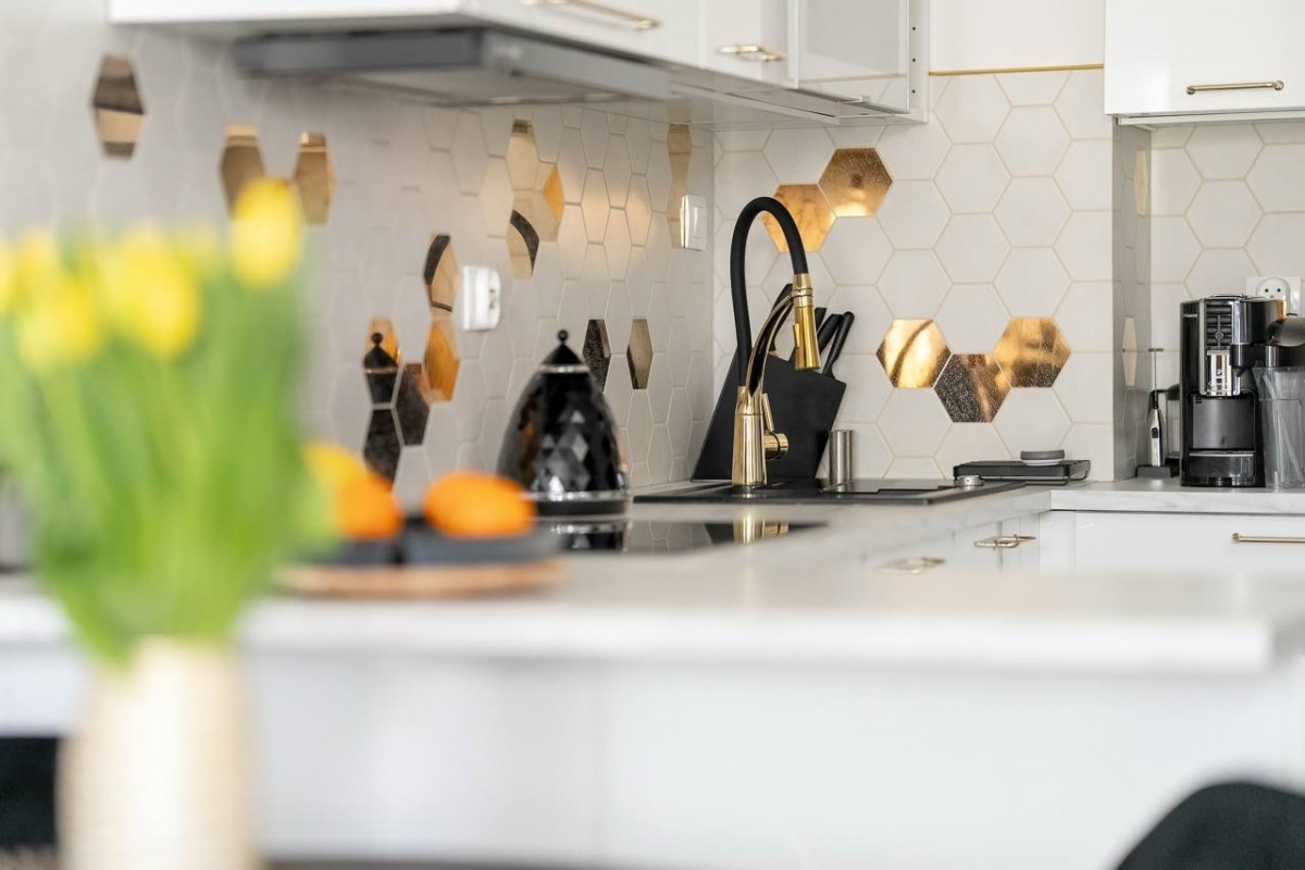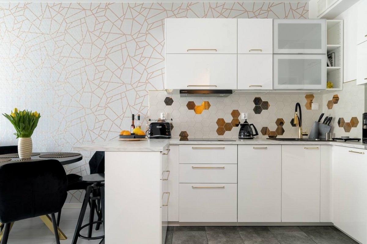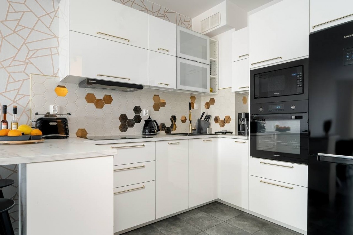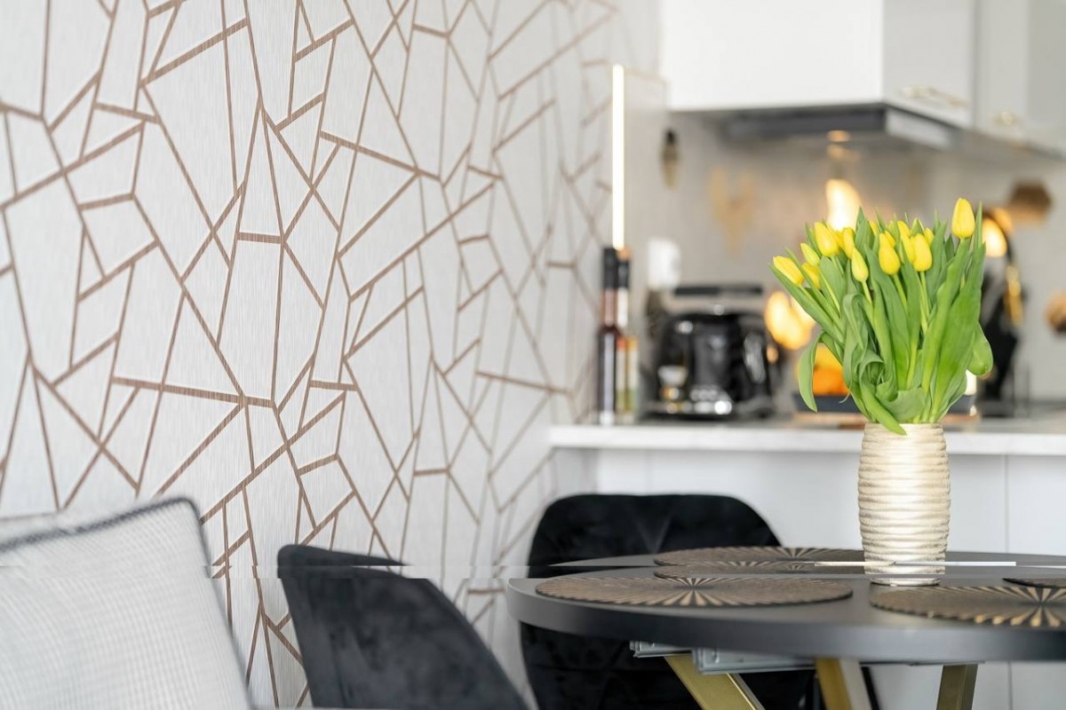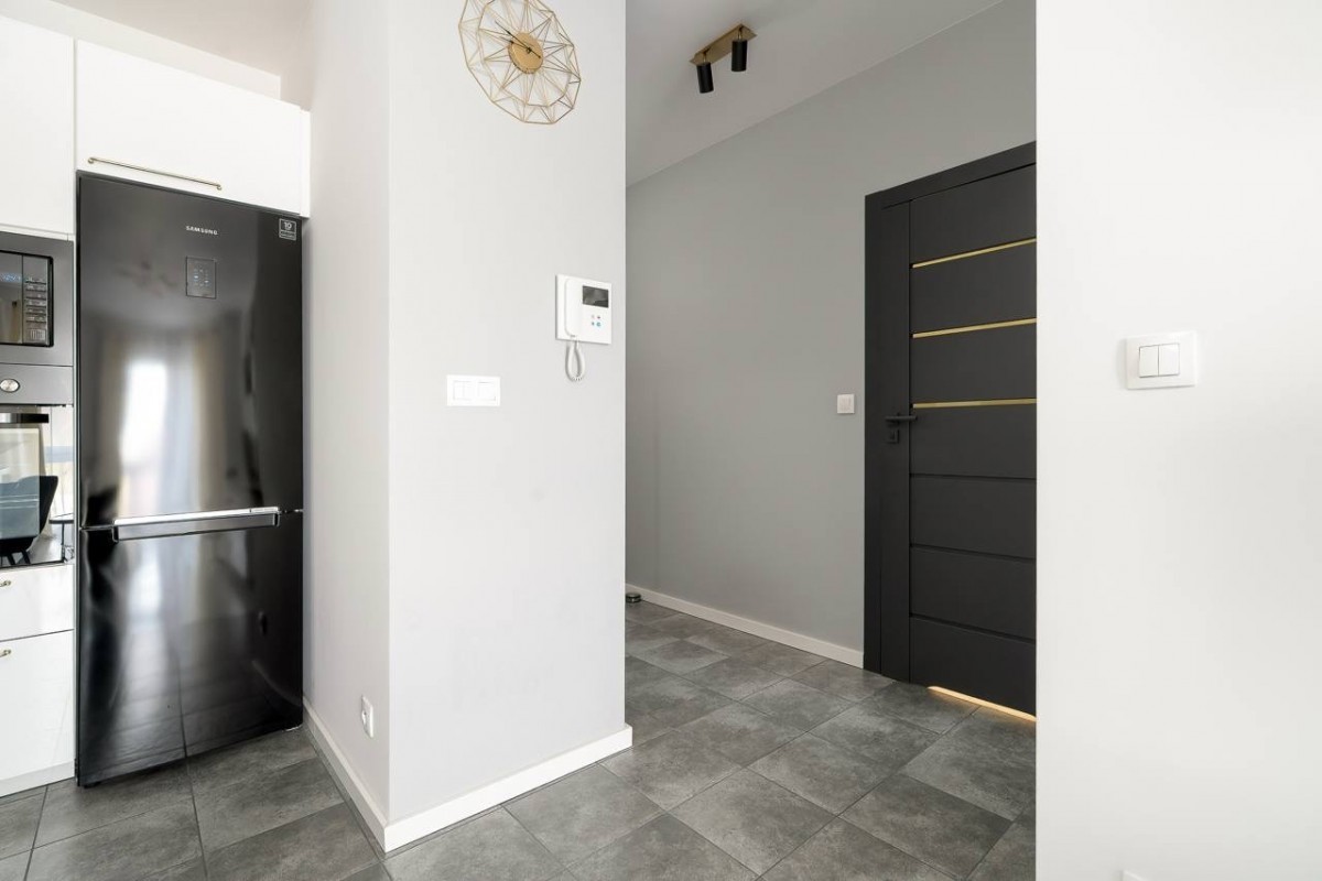 Mieszkanie zostało gustownie urządzone i jest w pełni wyposażone. Kuchnia w zabudowie wyposażona w sprzęt AGD marki Samsung: piekarnik, mikrofala, zmywarka, lodówka, okap.