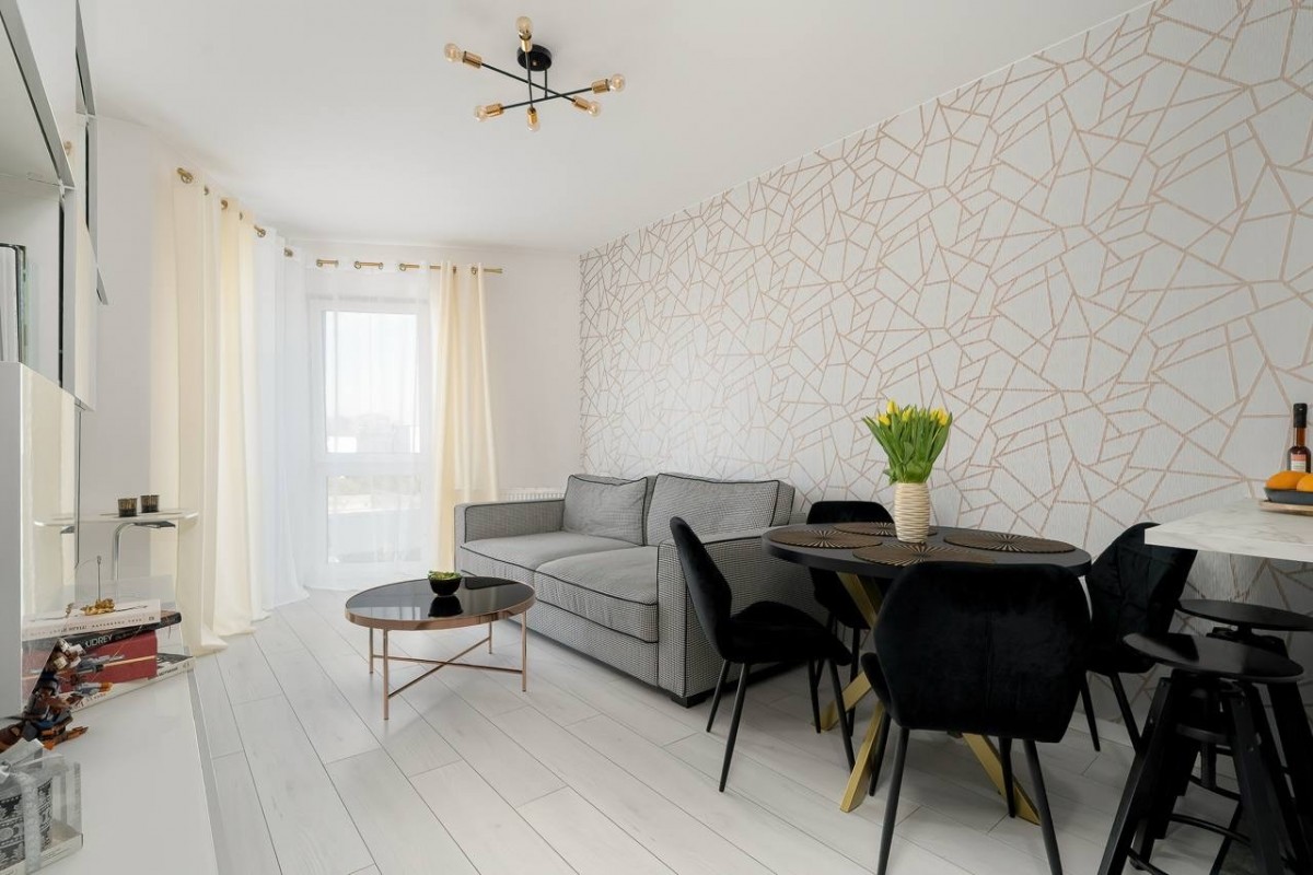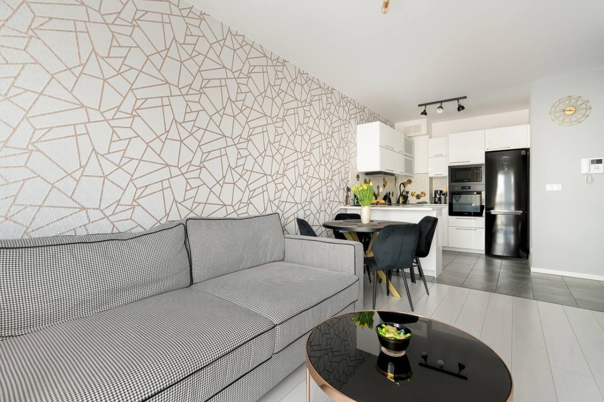 Na wynajem nowoczesne, stylowo wykończone 2-pokojowe mieszkanie o powierzchni 40,17 m², położone na 1. piętrze apartamentowca z 2020 roku w inwestycji River House przy ul. Starołęckiej w Poznaniu.