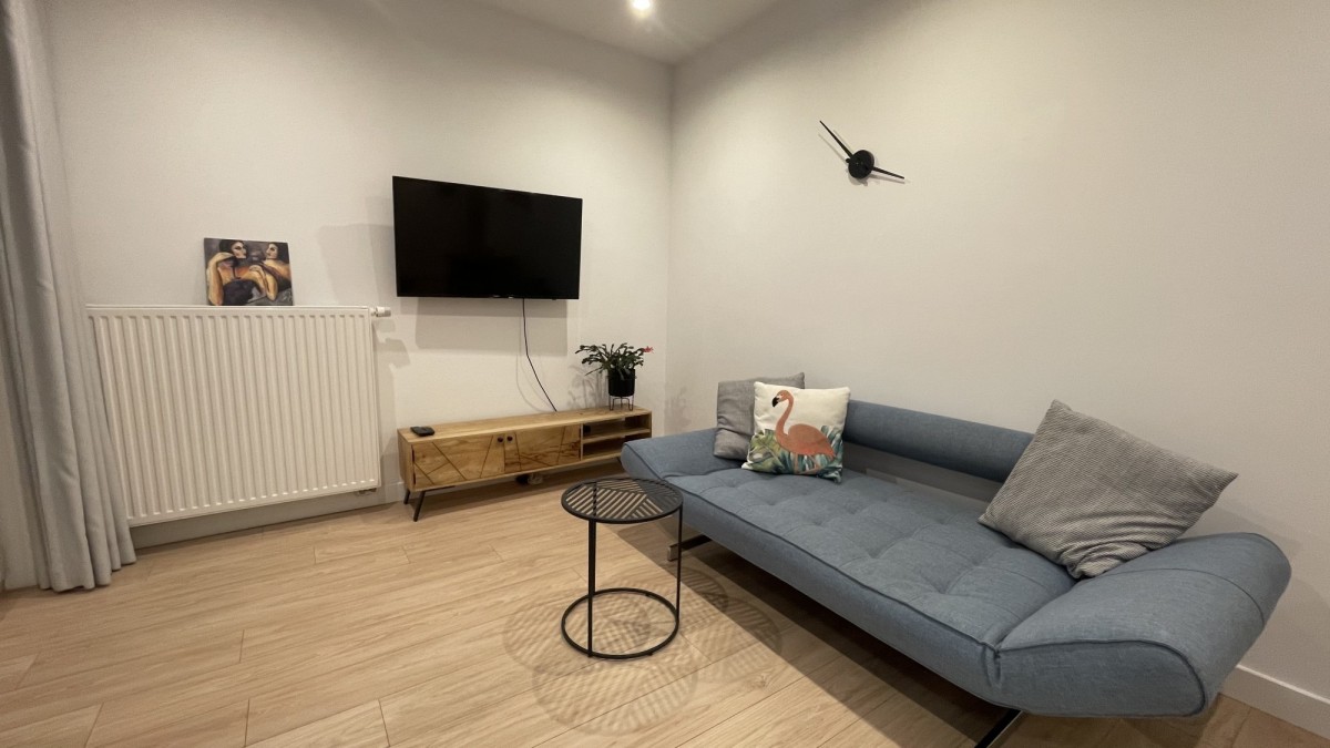✔ Salon wyposażony w kanapę rozkładaną, TV, stół z 2 krzesłami,