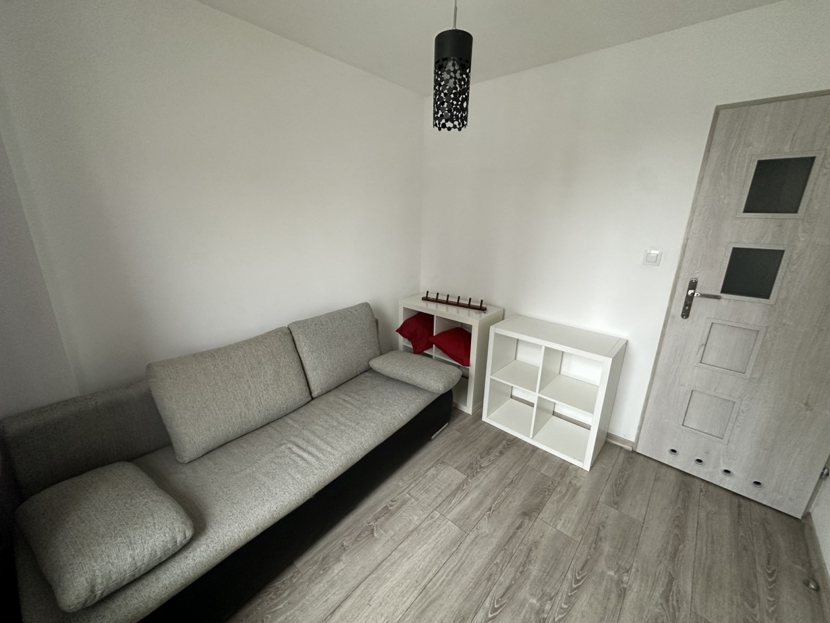 Drugi, mały pokój (kanapa z funkcją spania, szafka, 2 wieszaki ubraniowe);