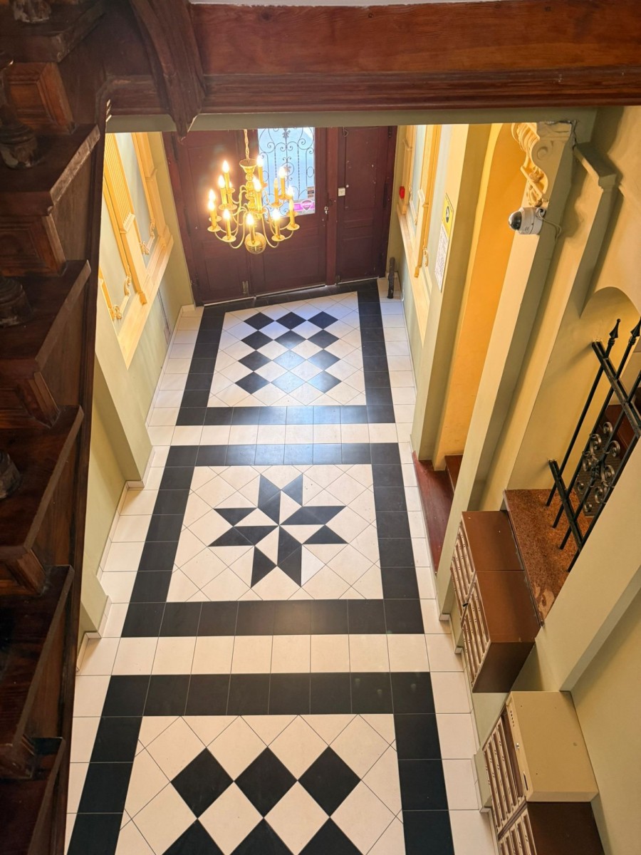 Mieszkanie mieści się w zadbanej, klasycznej kamienicy przy ulicy Strzałowej 3 na pierwszym piętrze. Budynek wyróżnia się solidną architekturą i grubymi murami, które zapewniają świetną izolację termiczną i akustyczną. Klatka schodowa utrzymana w dobrym stanie po remoncie, a wejście zabezpieczone domofonem, co gwarantuje mieszkańcom bezpieczeństwo i prywatność w samym sercu tętniącego życiem miasta.