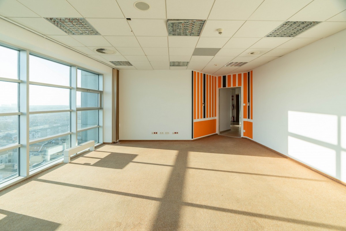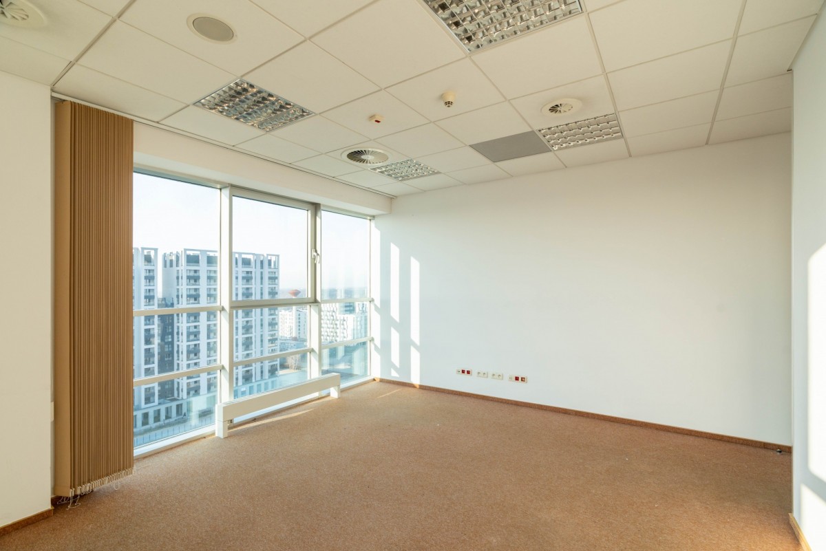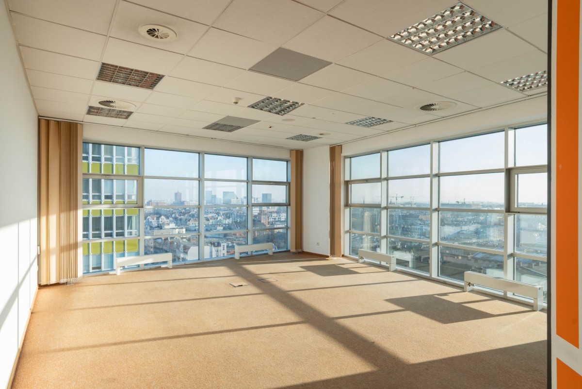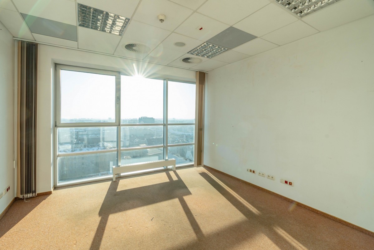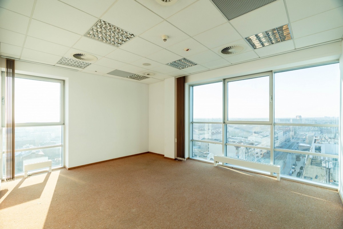 Wnętrze: Lokal na 11. piętrze to jasna, świetnie doświetlona przestrzeń z panoramicznymi przeszkleniami.