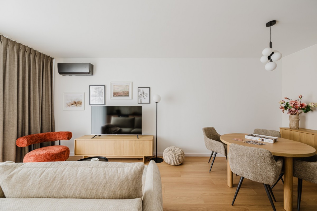 Wnętrze utrzymane w spójnej, eleganckiej stylistyce, z wykorzystaniem wysokiej klasy materiałów oraz dbałością o każdy detal. Duże przeszklenia i południowa ekspozycja zapewniają doskonałe doświetlenie przez cały dzień, a komfort termiczny gwarantuje klimatyzacja.