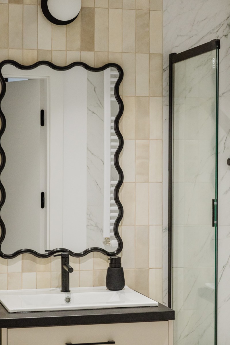 nowoczesna łazienka: wykończona materiałami wysokiej jakości, z dbałością o estetykę i funkcjonalność.