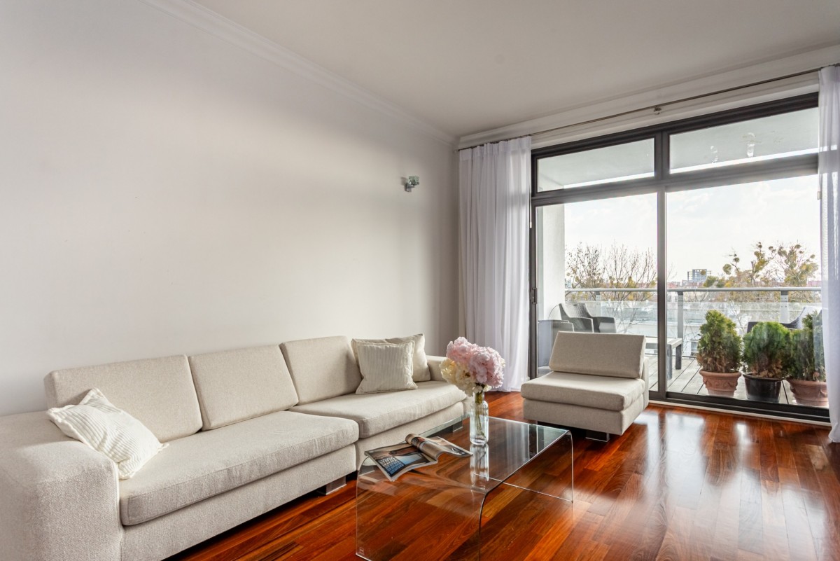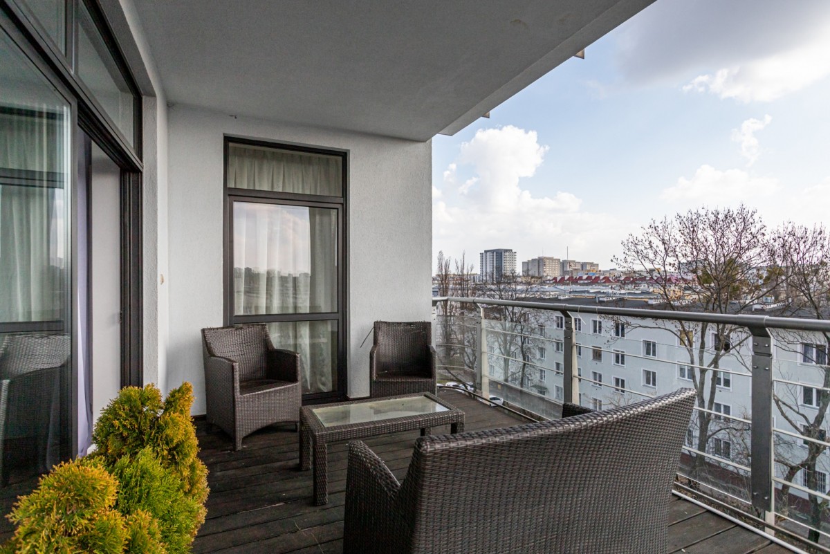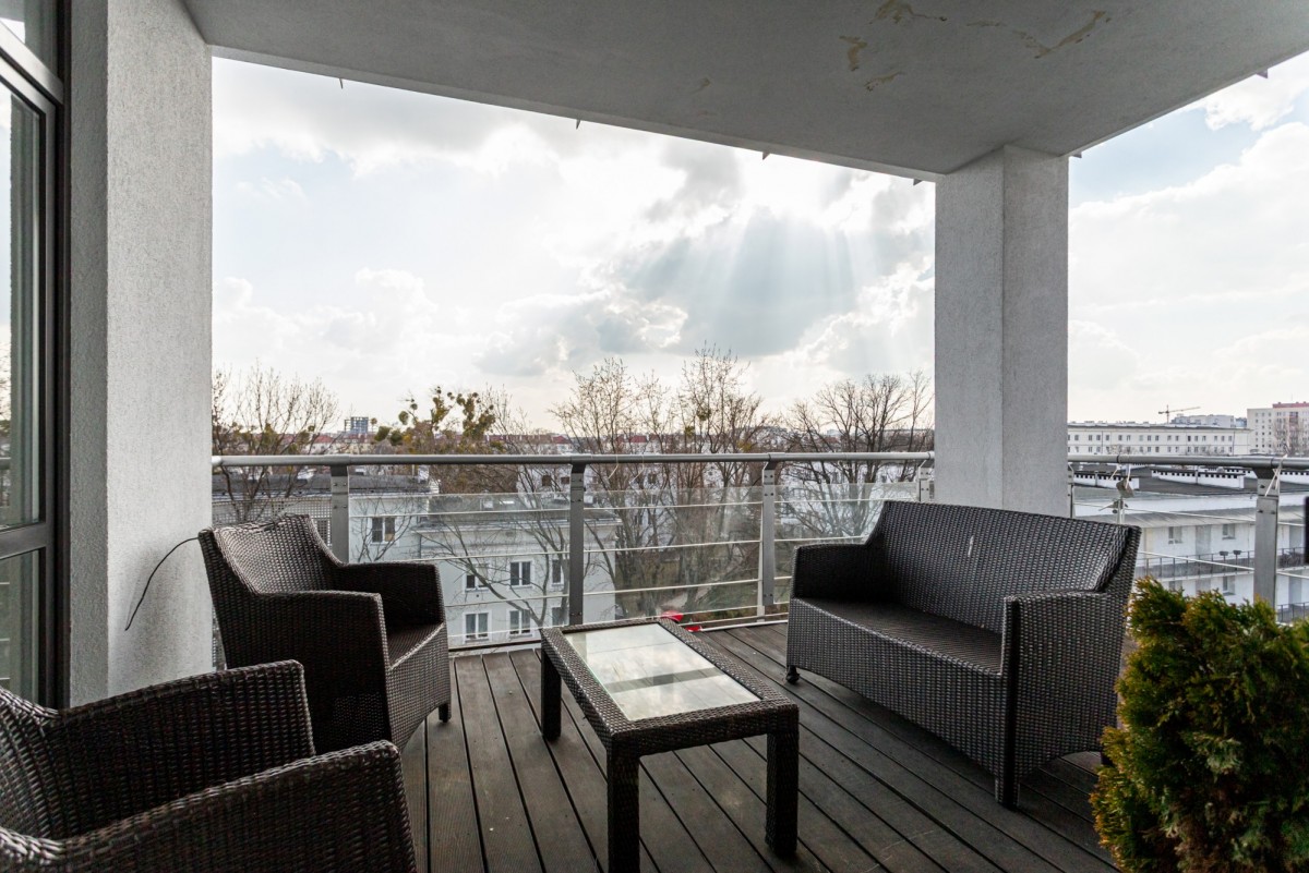 ekspozycją południowo-zachodnią zapewniającą świetne doświetlenie. Z dużego salonu oraz tarasu roztacza się widok na zieloną okolicę bez sąsiadów „vis-à-vis”. Nowoczesna kuchnia wyposażona jest m.in. w winiarkę, a apartament oferuje komfort i prywatność na najwyższym poziomie.