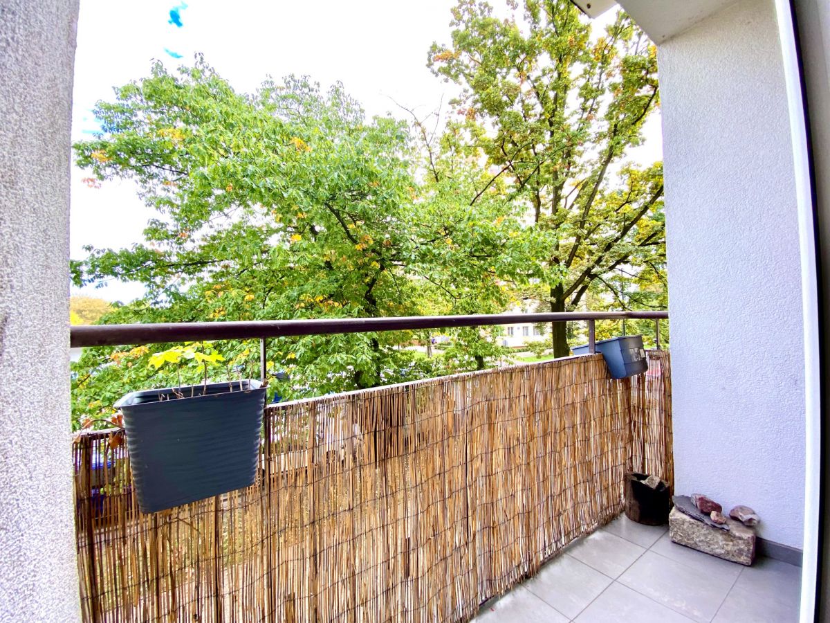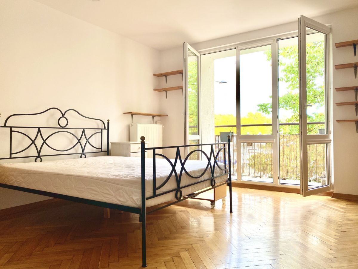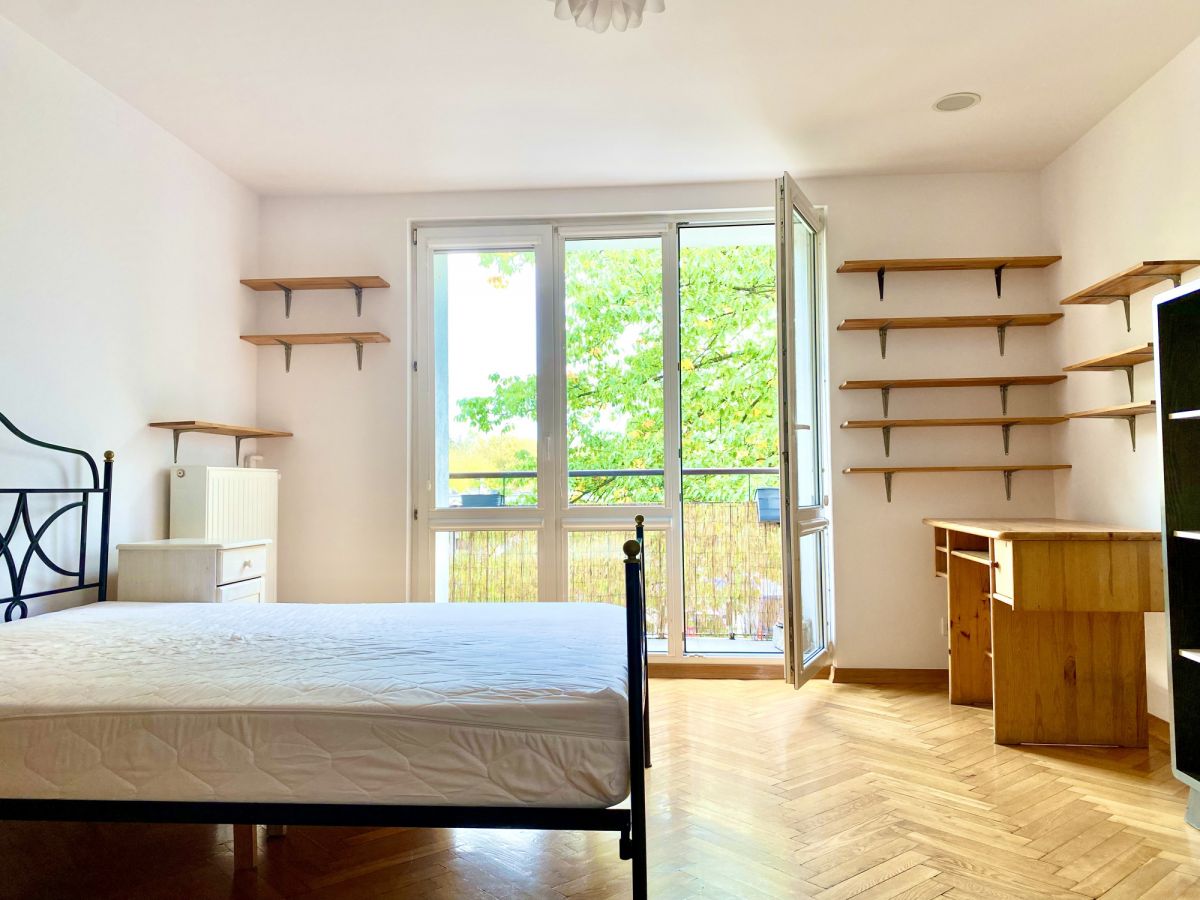 - Duży, jasny pokój z wyjściem na balkon z widokiem na starodrzewi.