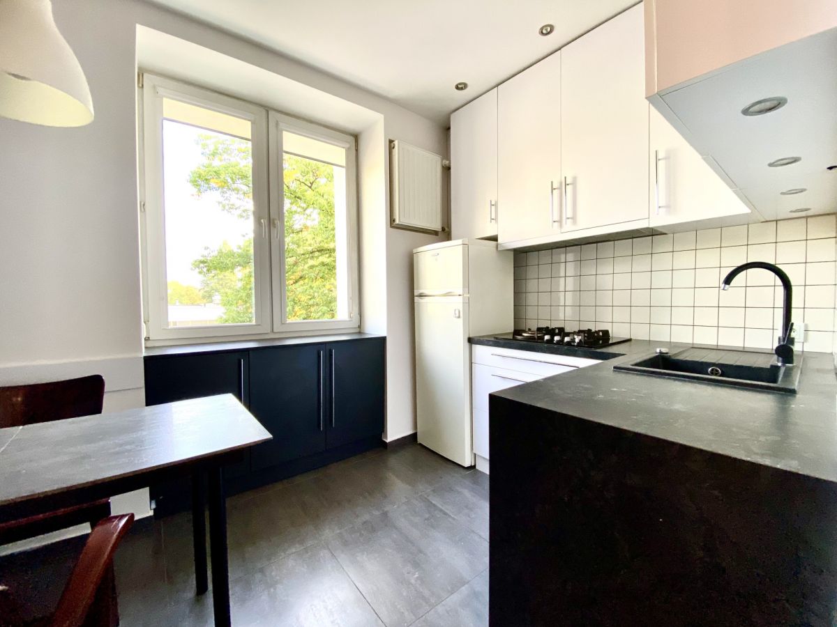 Do wynajęcia przestronna kawalerka o powierzchni 37,2 m², położona na 1 piętrze w kameralnym, 4-piętrowym budynku na Saskiej Kępie.