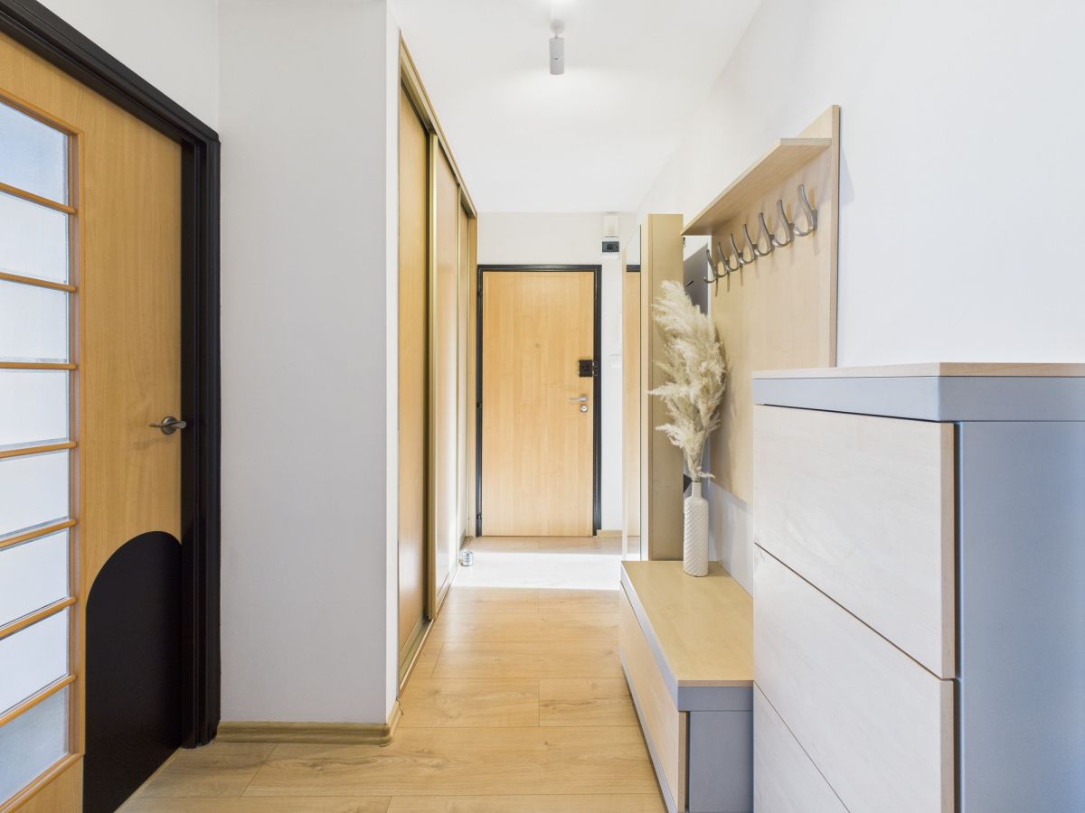 Mieszkanie posiada funkcjonalny, rozkładowy układ: