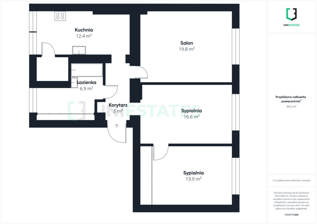 a 3-room apartment with an area of 80 m2 in