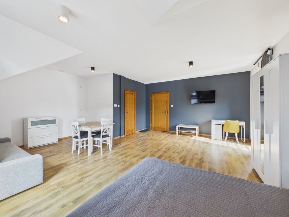 • przestronny pokój dzienny z aneksem kuchennym;
