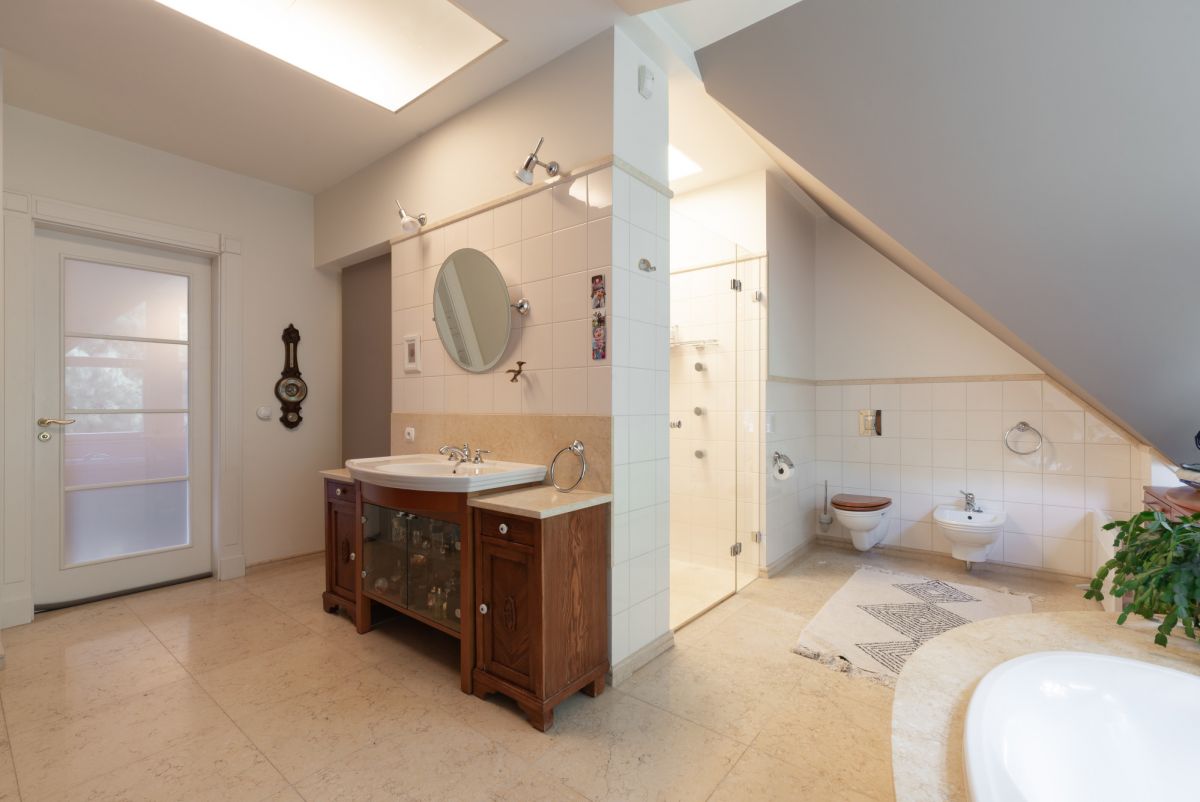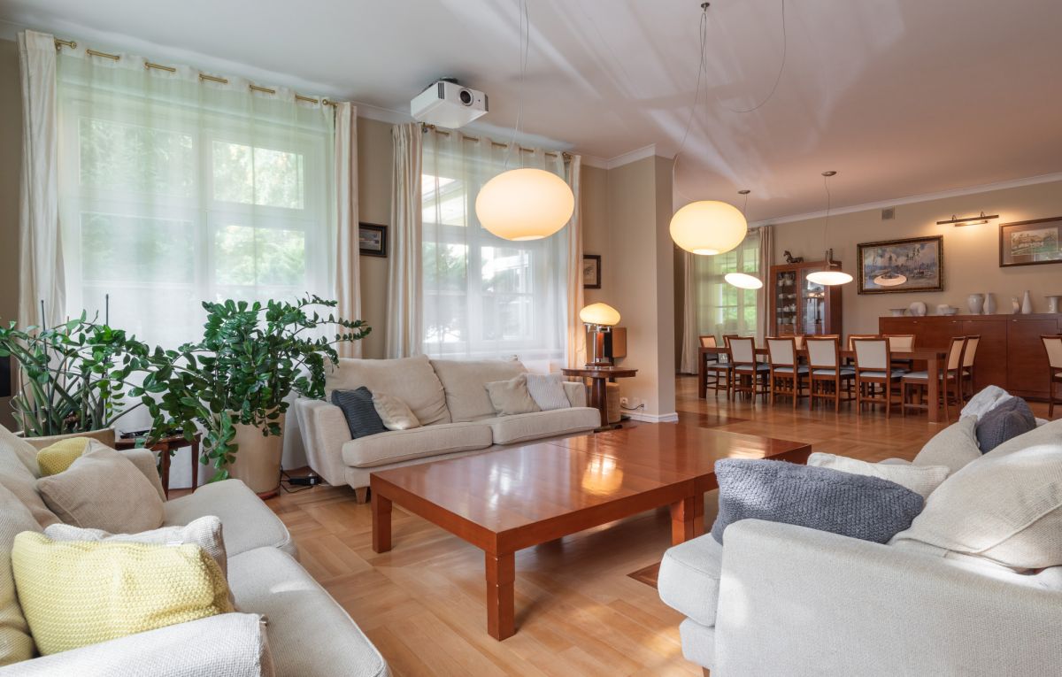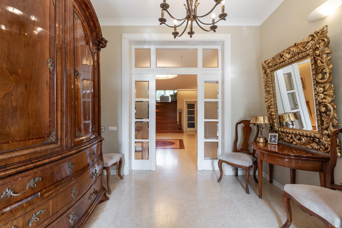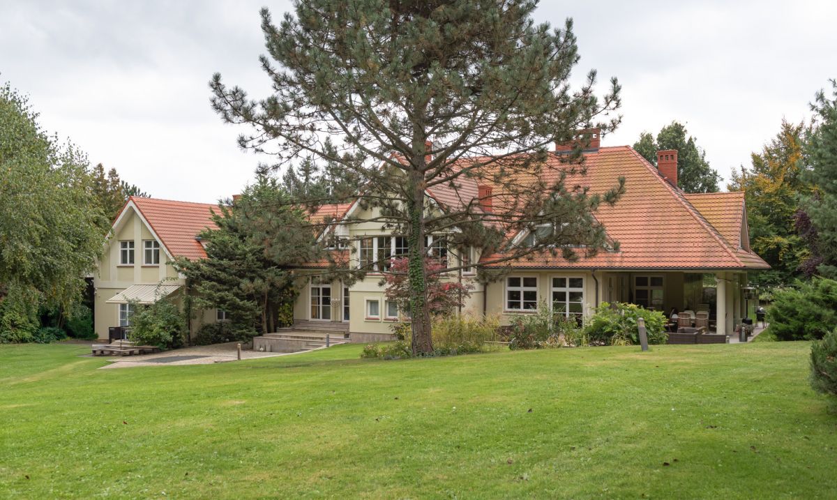 To dom o powierzchni ok. 650 m², zaprojektowany z myślą o komforcie wielopokoleniowej rodziny, z przestronnym ogrodem, basenem i oranżerią.