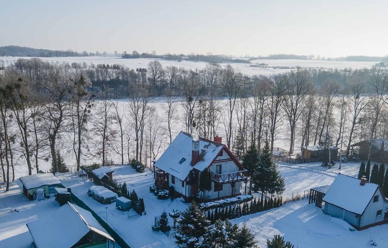 Powierzchnia działki wynosi 1250 m², zagospodarowana, lekko nachylona do jeziora. Działka z linia brzegowa i prywatnym pomostem.