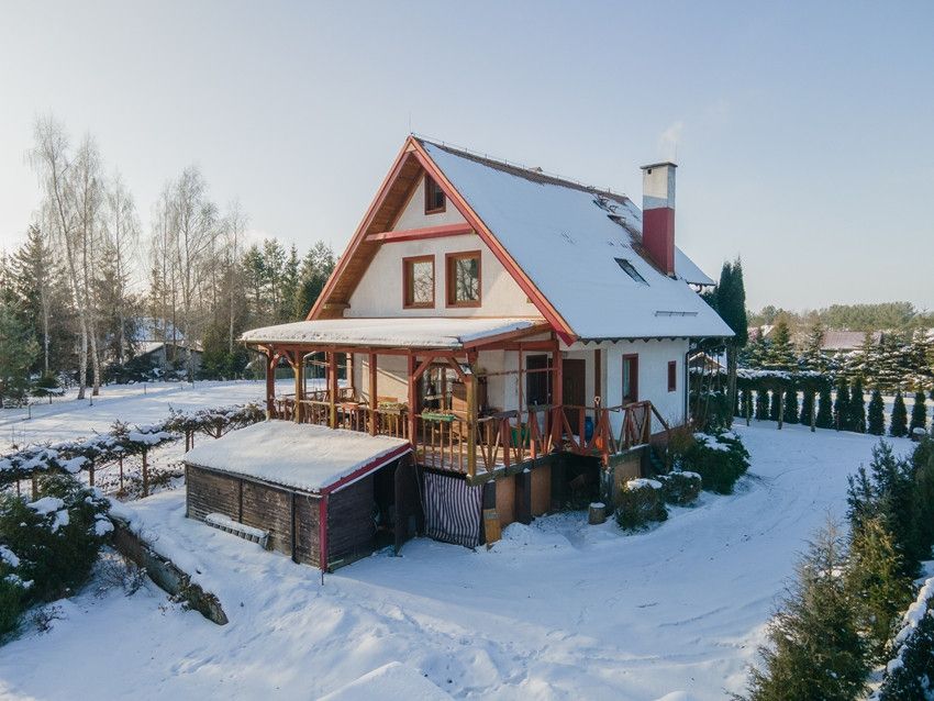 Dwuszybowe okna z PCV. Przydomowa oczyszczalnia ścieków, woda z wodociągu.