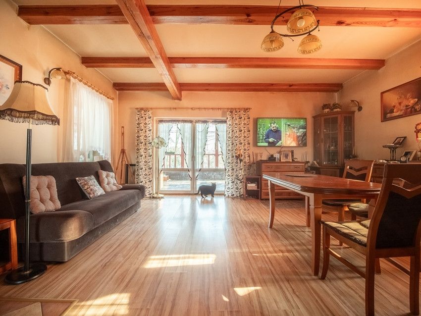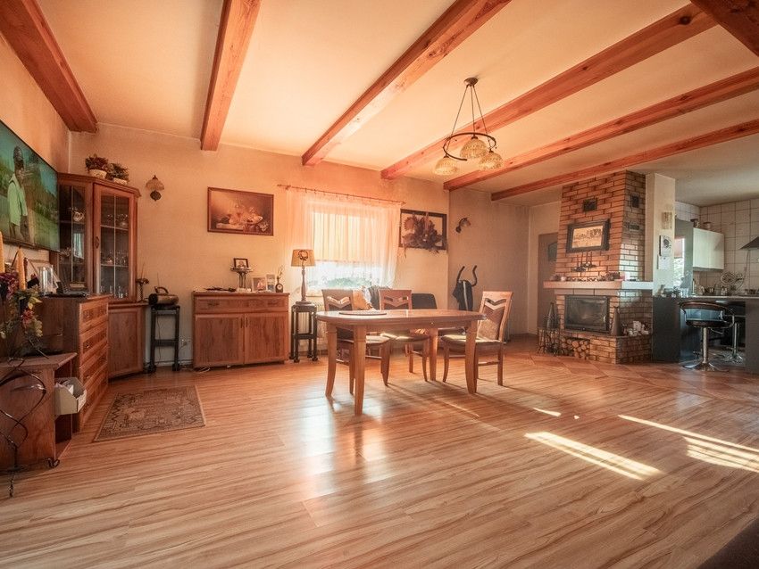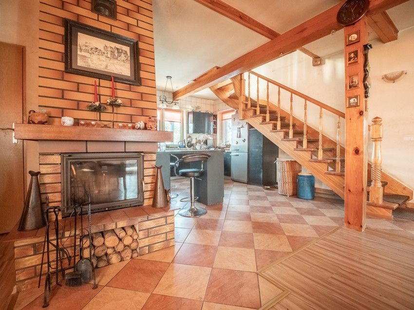 Dwa źródła ogrzewania: tradycyjny piec CO i alternatywne z kominka (rozprowadzenie ciepła na salon kuchnię, łazienkę i sypialnię).