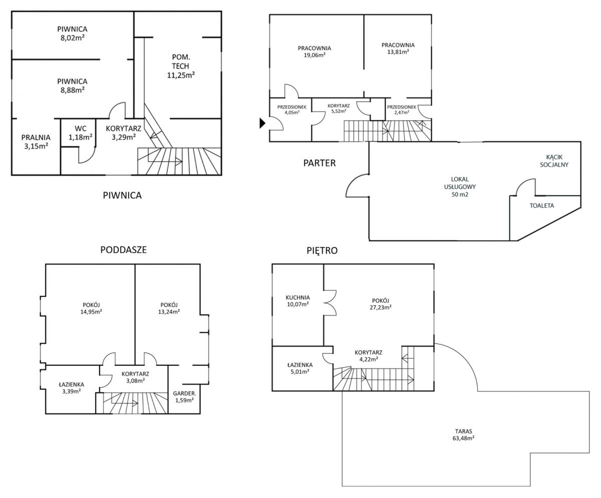 Wyjątkowa oferta sprzedaży domu w zabudowie szeregowej, która łączy w sobie urok dawnej architektury z funkcjonalnością, jakiej szukają współcześni inwestorzy oraz rodziny. Dom o łącznej powierzchni 222 m² oferuje aż cztery kondygnacje mieszkalne oraz niezależny lokal usługowy, co czyni go idealnym miejscem do życia, prowadzenia biznesu lub czerpania zysków z wynajmu.