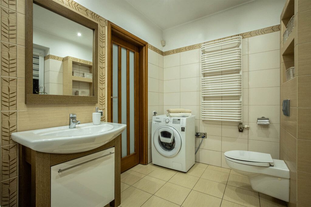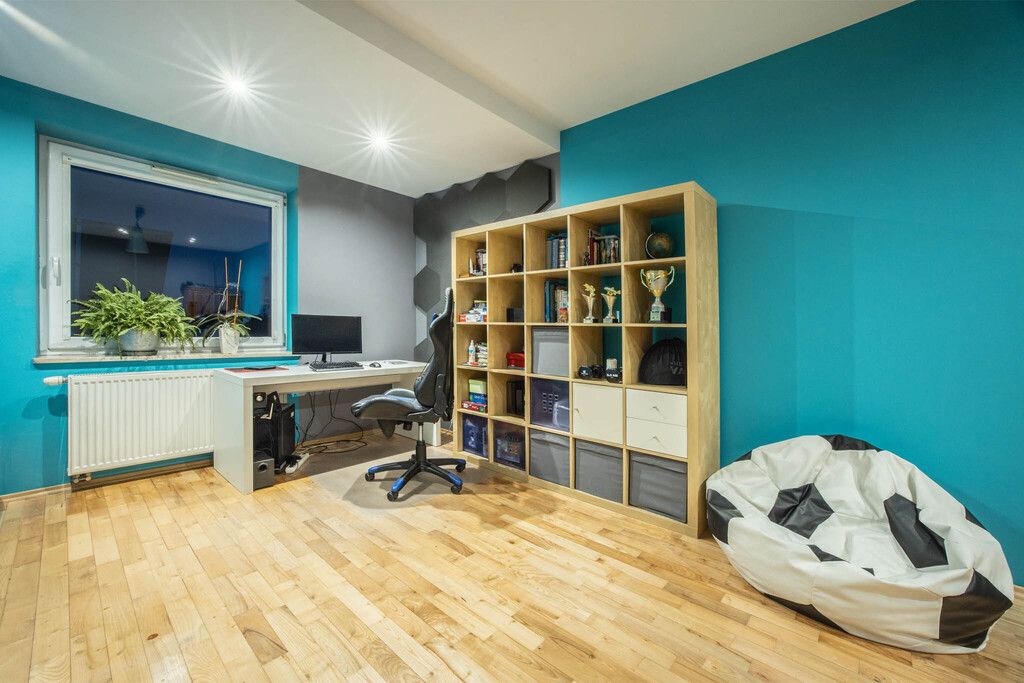 Całe piętro wyposażone jest w ogrzewanie podłogowe. Wnętrza są spójne kolorystycznie, starannie wykończone materiałami wysokiej jakości, tworzącymi ciepłą i przyjazną atmosferę.