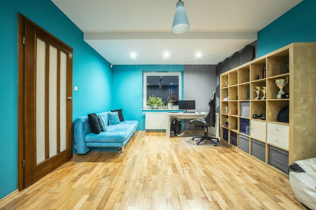 Na podłogach położono parkiety, a całość jest bardzo dobrze utrzymana. Dom nie wymaga żadnych nakładów finansowych – gotowy do zamieszkania od zaraz.