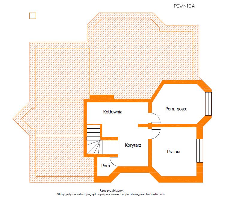 Budynek ma trzy funkcjonalne poziomy: piwnicę, parter oraz użytkowe poddasze. Taki układ pozwala wygodnie rozdzielić strefy życia codziennego — część dzienną, prywatną oraz gospodarczą lub hobby. Każdy domownik może mieć tu swoją przestrzeń, a goście nie będą na sobie.
