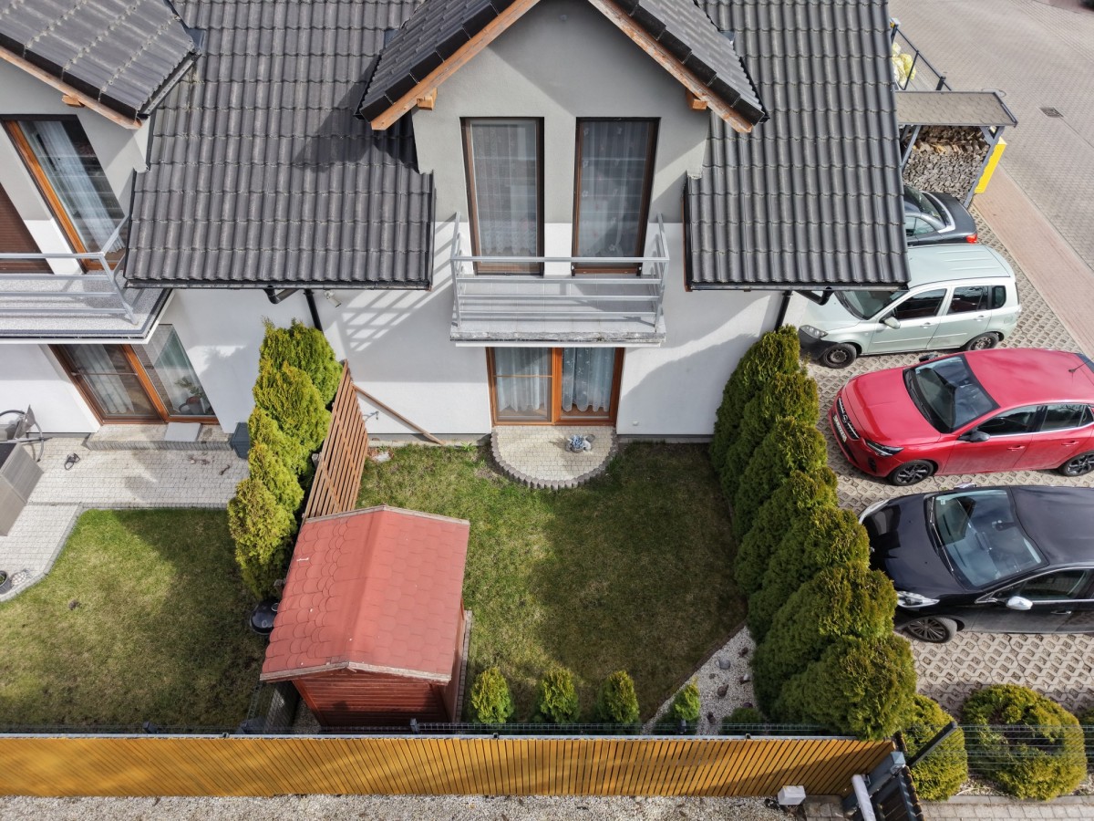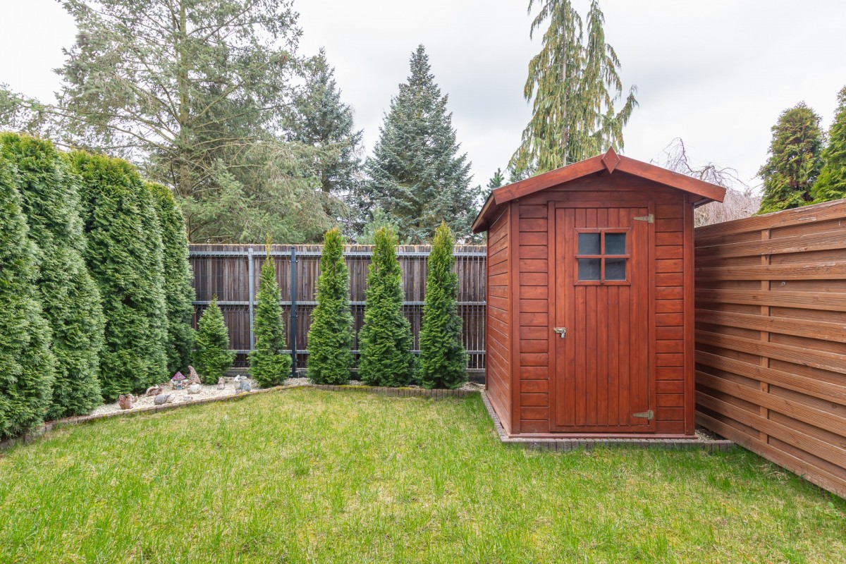 Do dyspozycji właścicieli pozostają 2 naziemne miejsca parkingowe oraz domek gospodarczy, w którym bez problemu zmieszczą się rowery całej rodziny czy sprzęt sportowy.