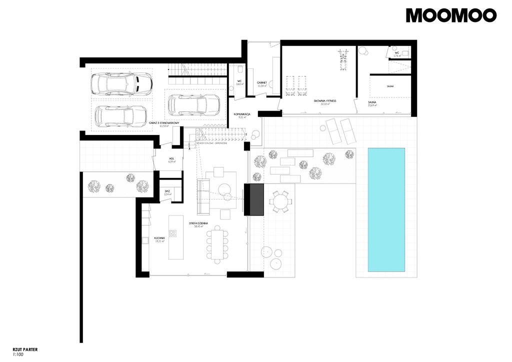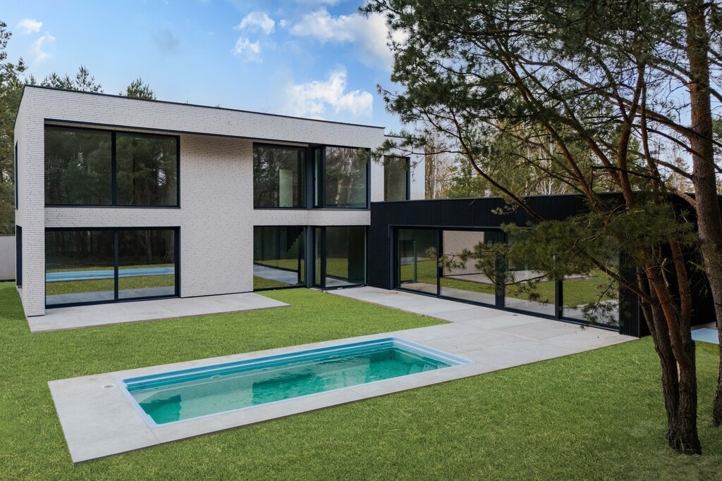 Projekt tej ekskluzywnej rezydencji powierzono renomowanej pracowni architektonicznej, gwarantując wysoki poziom estetyki i funkcjonalności. Każdy element został starannie zaprojektowany, aby stworzyć harmonijną przestrzeń, która doskonale łączy luksus z naturalnym pięknem otaczającego środowiska.