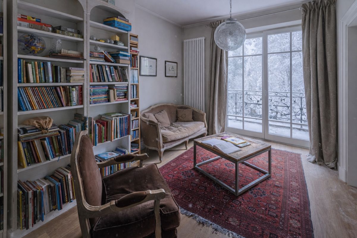 * Hall z przestrzenią oraz biblioteką,