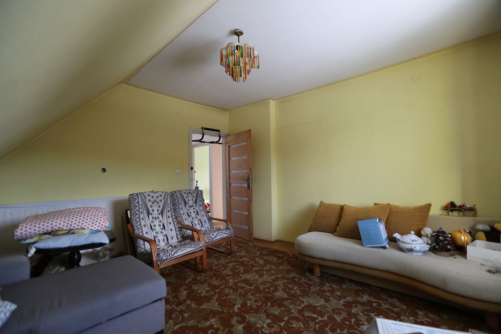 W pokoju przechodnim na II piętrze znajduje się piękny piec kaflowy obudowany białymi płytkami. Pomieszczenie to można adaptować na kuchnię. Do budynku prowadzą dwa wejścia, jedno z parteru a drugie przez balkon na I piętrze. Obok budynku znajduje się większe pomieszczenie gospodarcze zbudowane częściowo z drewna oraz pustaków żużlobetonowych. Natomiast przy wjeździe zlokalizowany jest zamykany garaż.
