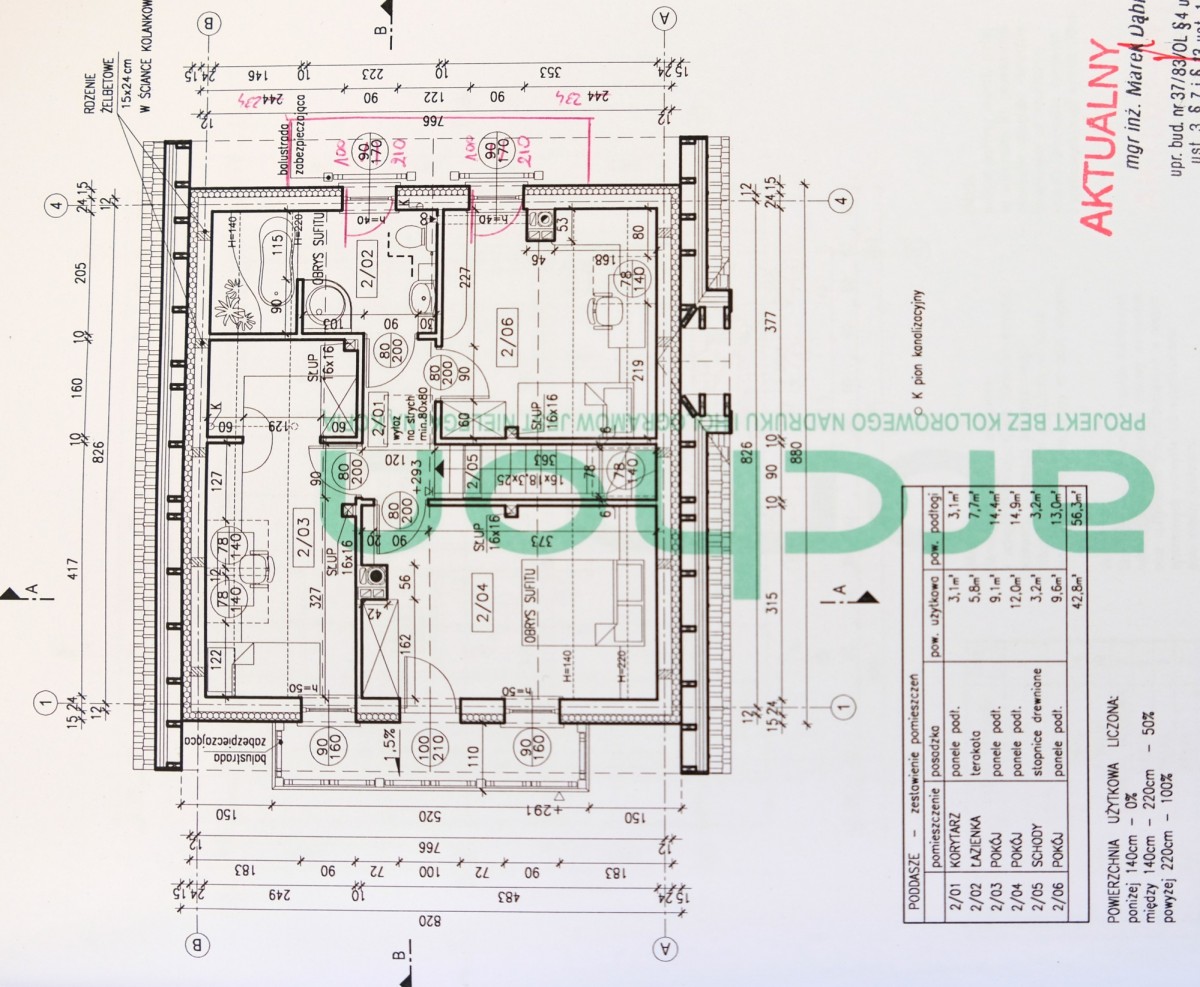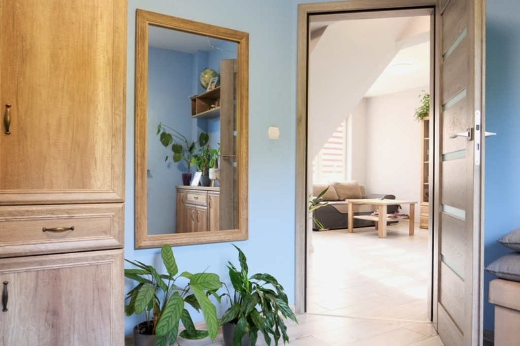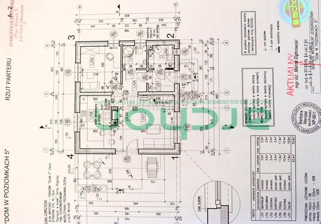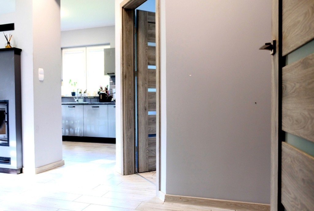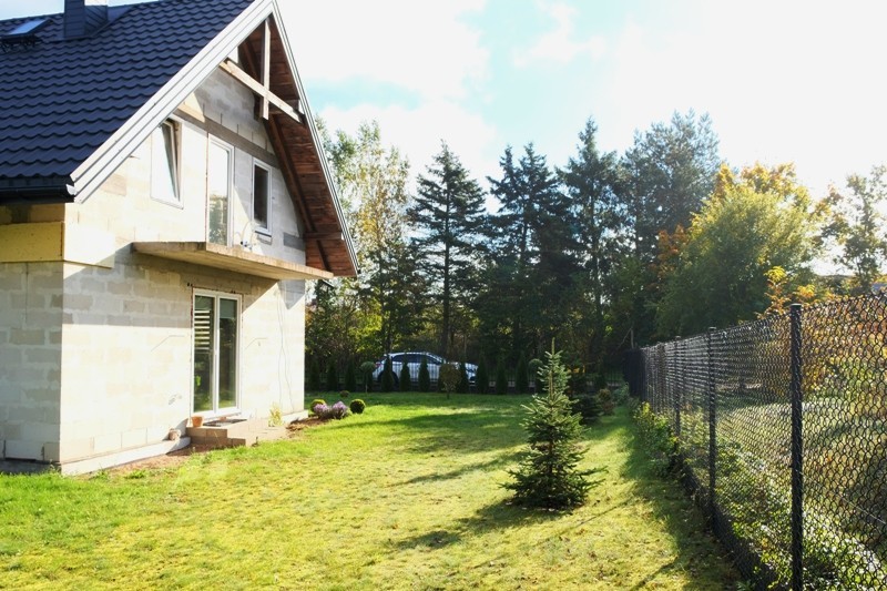 Dom wolnostojący na działce o pow. 800m2. Parter o pow. 60m2 wykończony, tu mieści się salon z kominkiem i aneks kuchenny w zabudowie z wyjściem do ogrodu, sypialnia i łazienka z kabiną prysznicową oraz pomieszczenie gospodarcze w którym znajduje się piec dwufunkcyjny do ogrzewania wody i całego domu. Góra budynku jest do wykończenia. Według projektu mają powstać tu 3 pokoje i łazienka, ale można wykorzystać tą powierzchnię do własnej aranżacji. Dom wymaga jeszcze ocieplenia z zewnątrz i otynkowania.