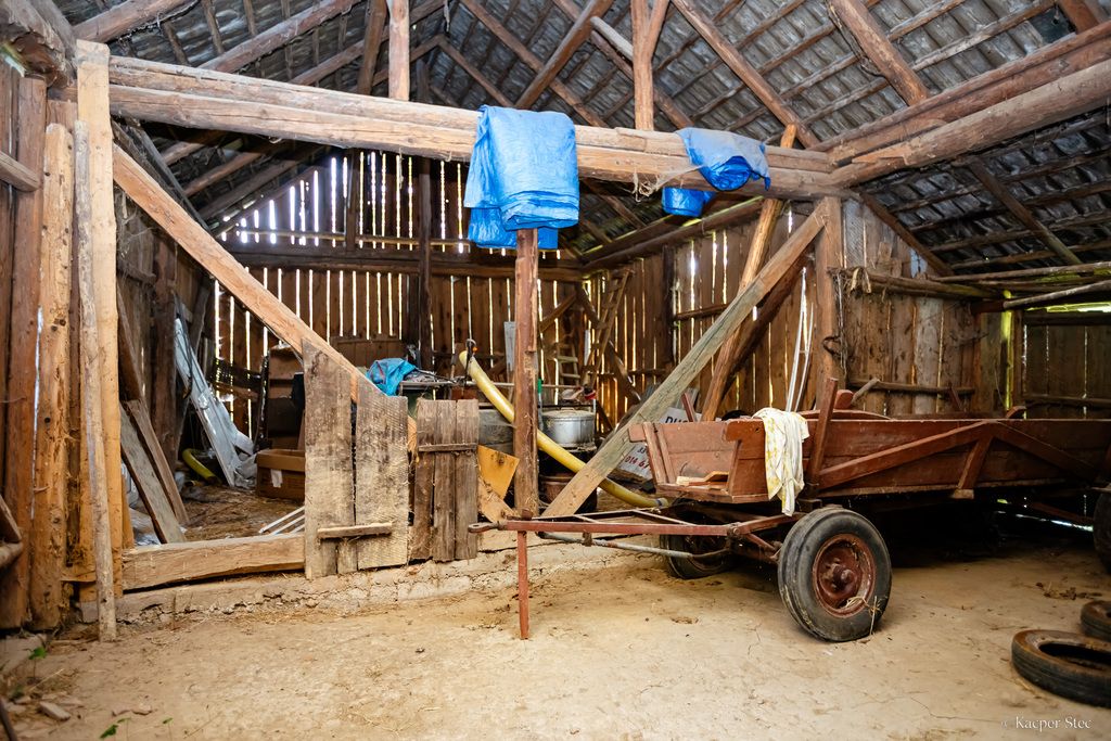 - drewniana stodoła – przestronny budynek gospodarczy w bardzo dobrym stanie, idealny do przechowywania maszyn rolniczych, zbiorów, siana, słomy lub innych materiałów.