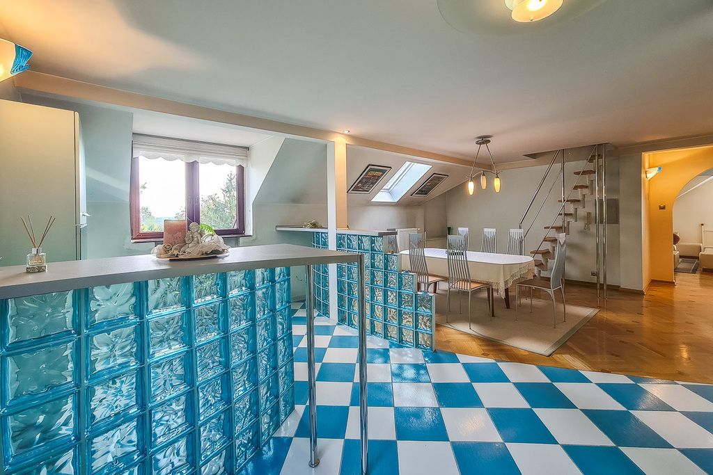 Dom o powierzchni 452 m² (użytkowa 430 m²) składa się z 14 pokoi, co daje wiele możliwości aranżacyjnych. Zbudowany w 1994 roku z cegły, z dachem pokrytym dachówką, oferuje solidną konstrukcję. Nieruchomość posiada 3 kondygnacje oraz poddasze użytkowe, co dodatkowo zwiększa przestrzeń do zagospodarowania.