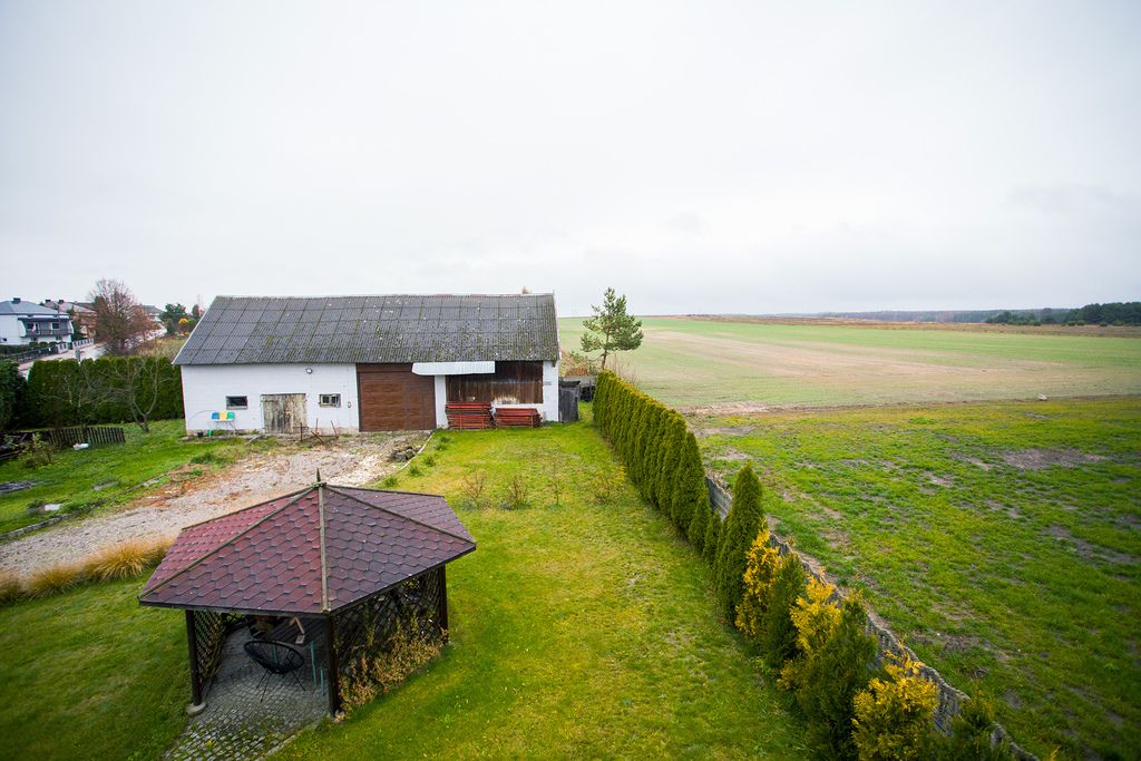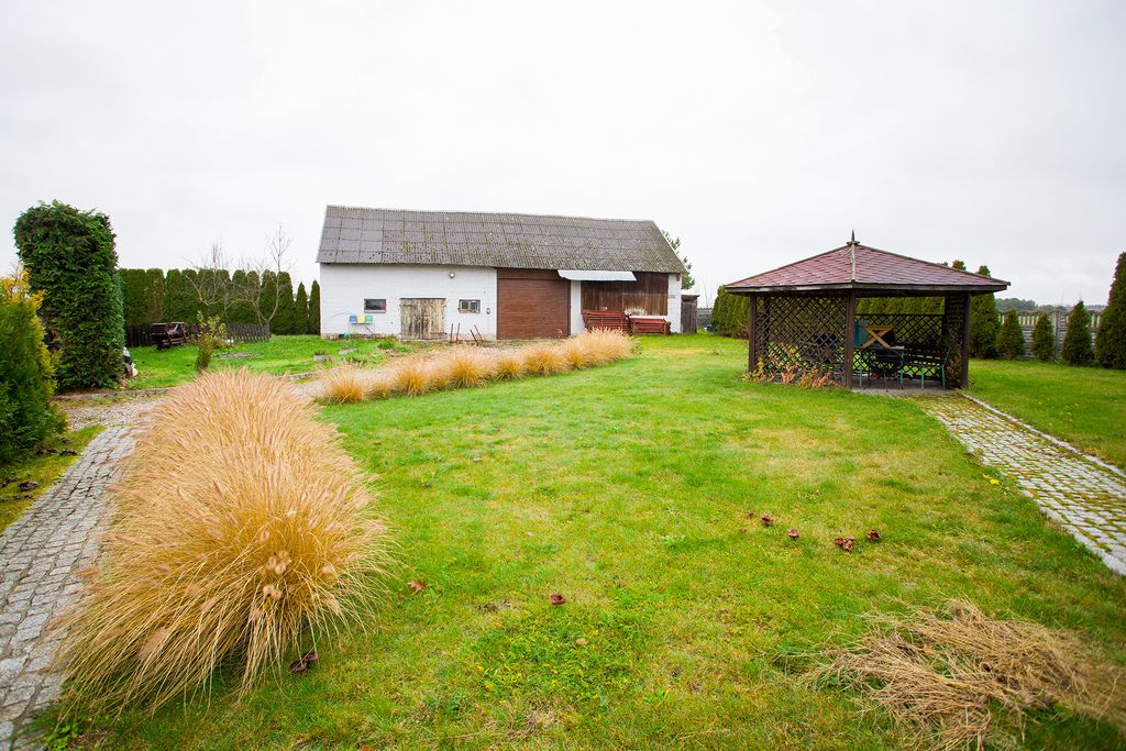 - Budynek gospodarczy (130 m²): To nie jest szopa. To solidna przestrzeń na warsztat, magazyn, flotę samochodów lub produkcję.