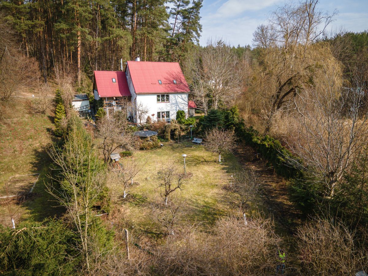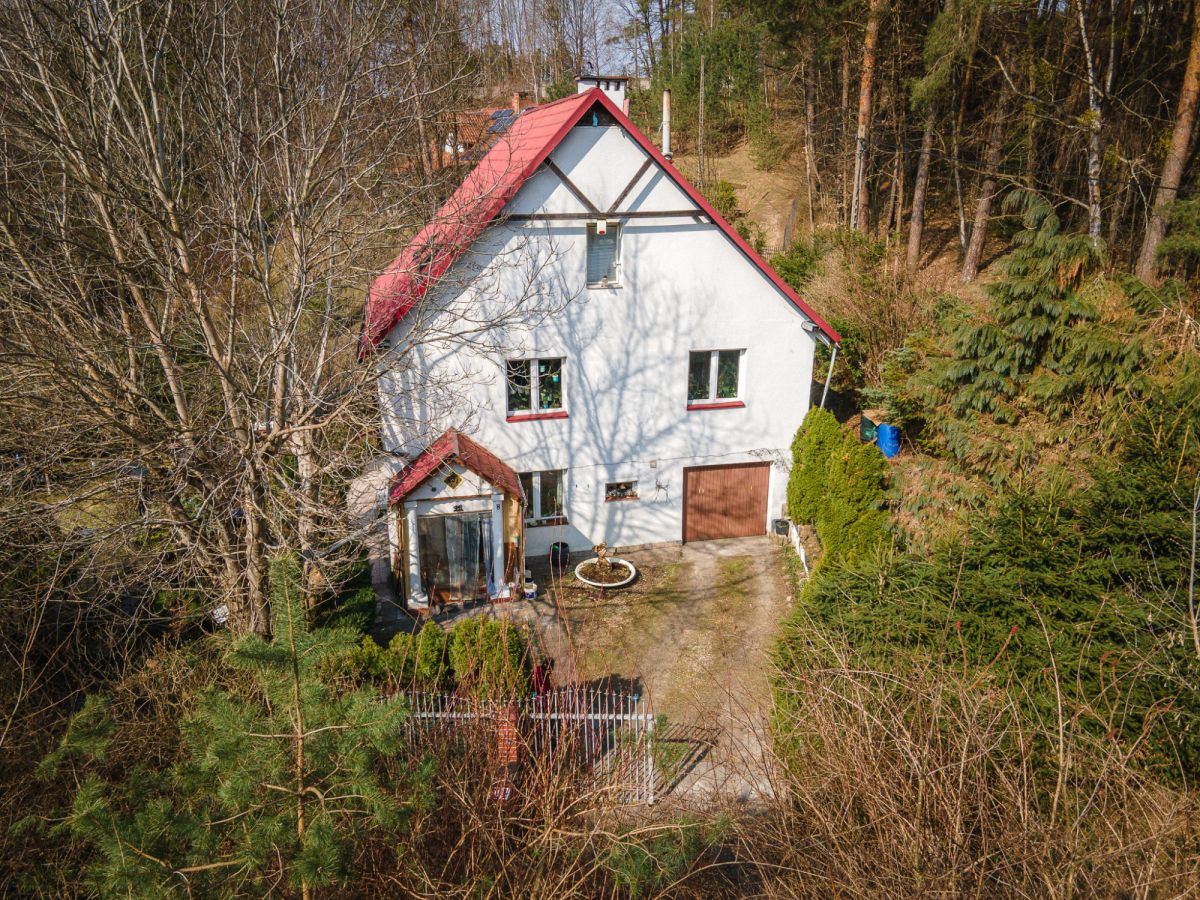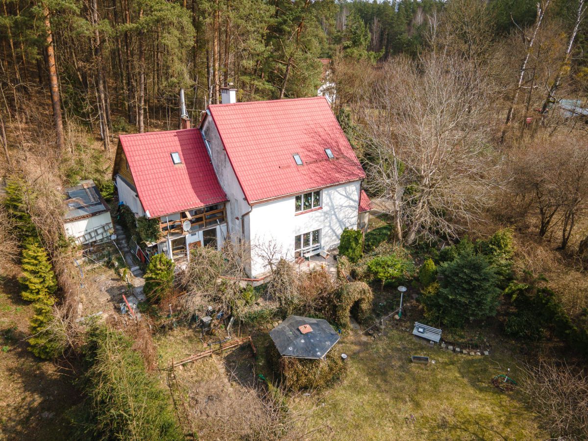 Działka o powierzchni 1010 m², ogrodzona, położona w otoczeniu lasu. Teren zapewnia prywatność i spokojny charakter nieruchomości.