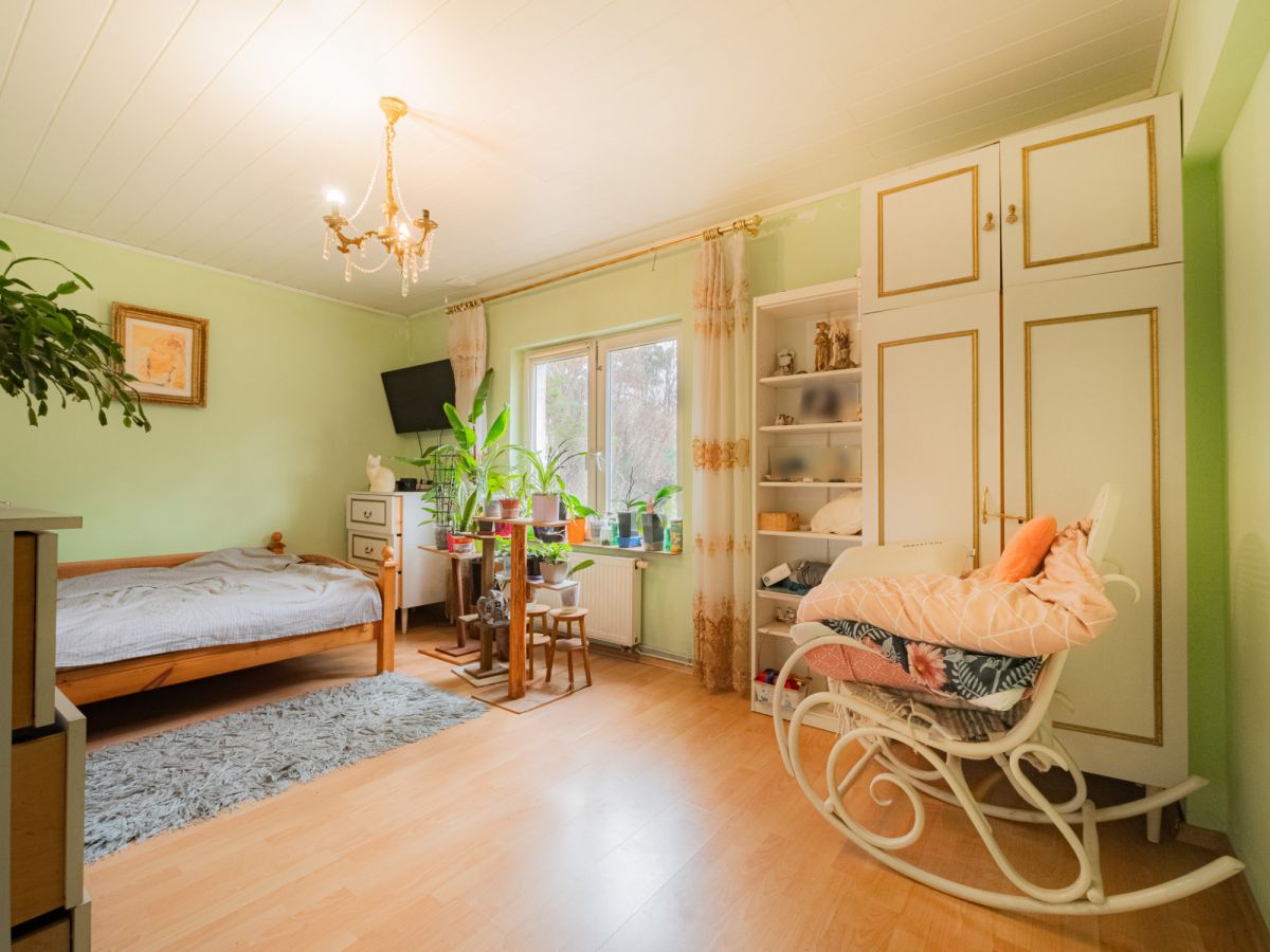 Budynek wolnostojący w technologii tradycyjnej, dwukondygnacyjny z dodatkowym poddaszem do adaptacji. Powierzchnia użytkowa wynosi 199,7 m², a układ pomieszczeń pozwala na dowolną aranżację przestrzeni. Dodatkowa powierzchnia poddasza daje możliwość stworzenia kolejnych pokoi, pracowni lub niezależnej części mieszkalnej.