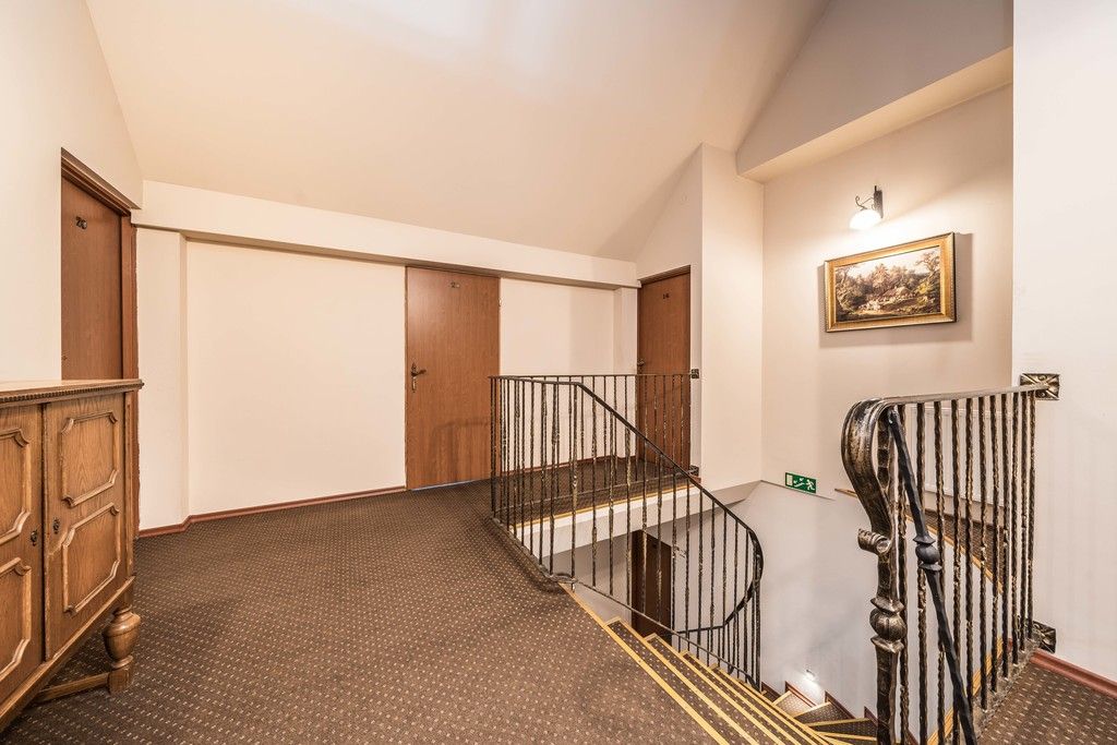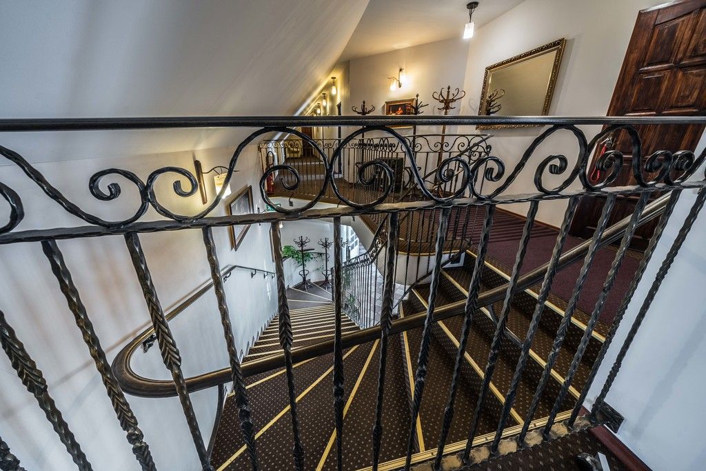 - na użytkowe poddasze prowadzą piękne kute schody, a znajduje się tam 6 pokoi gościnnych, każdy z łazienką oraz pomieszczenie gospodarcze.