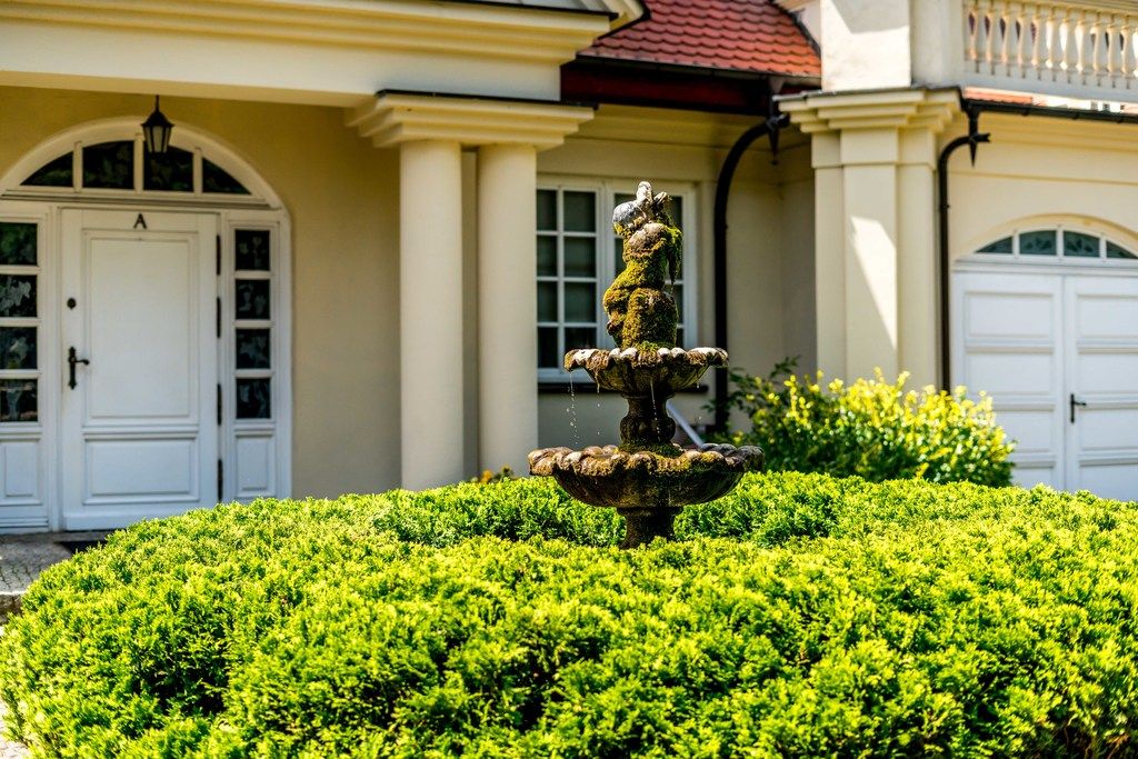 Przed budynkami efektowny podjazd z dodatkowymi miejscami parkingowymi oraz klimatyczna fontanna nadająca temu miejscu charakteru.