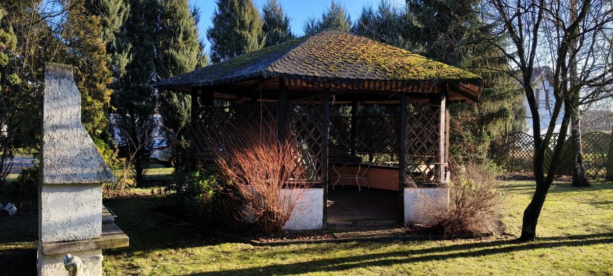 Altana służy jako ochrona przed różnymi warunkami atmosferycznymi ( słońce czy deszcz),przystosowana do przyrządzania i spożywania posiłków na świeżym powietrzu - to idealne miejsce rekreacyjno - wypoczynkowe. Obok betonowy gril.