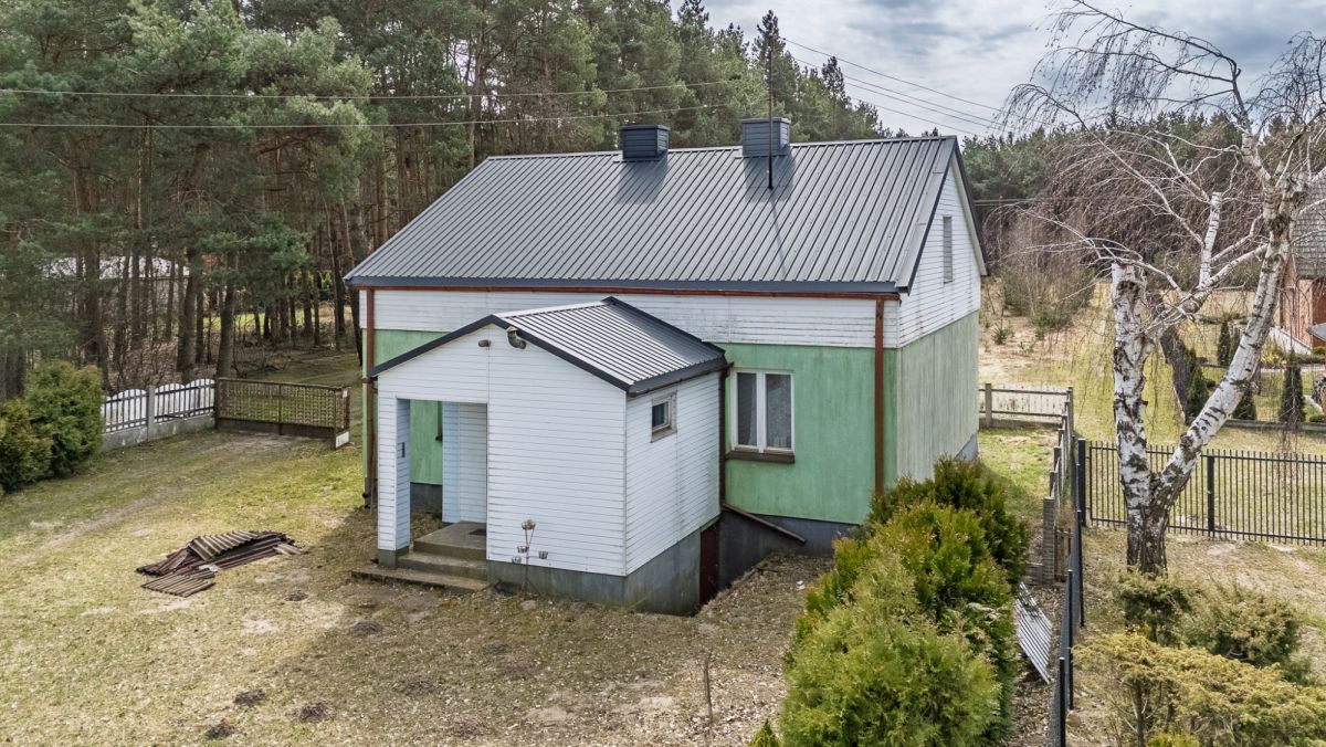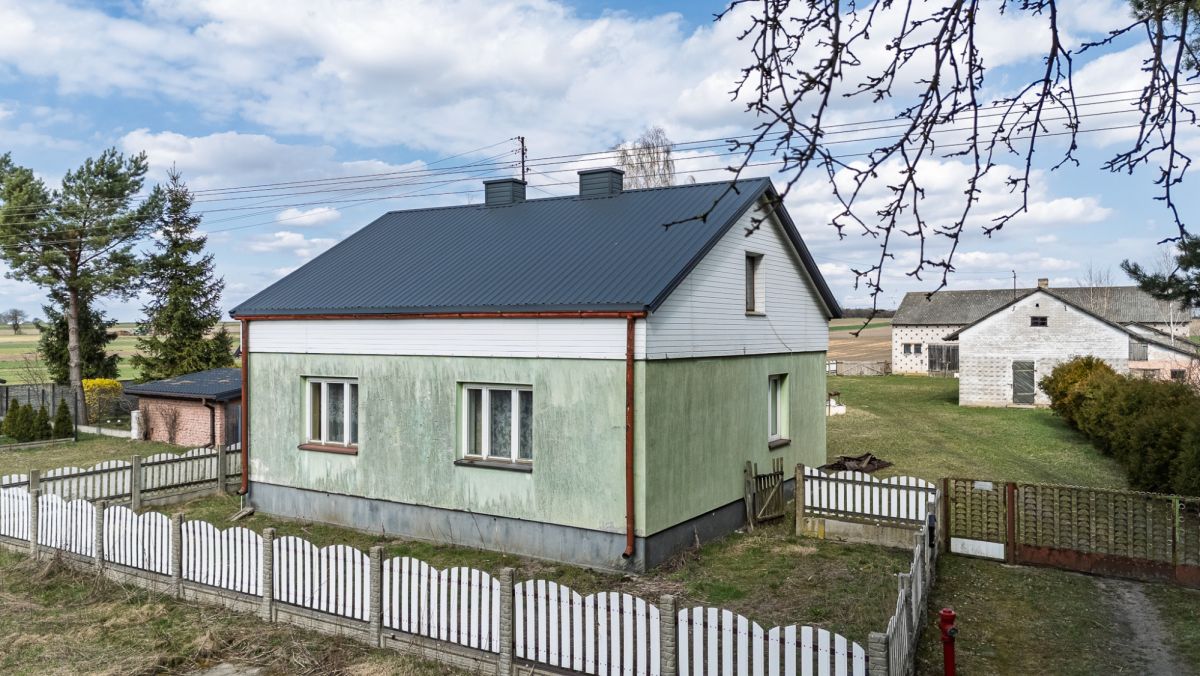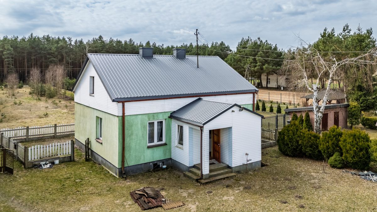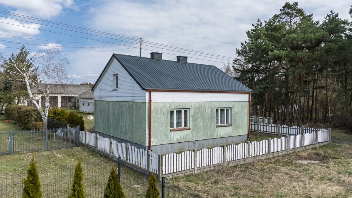 Budynek jednorodzinny mieszkalny wybudowano w 1970 roku w technologii tradycyjnej z cegły. Jest częściowo podpiwniczony, z poddaszem nieużytkowym. Powierzchnia użytkowa to ok. 80 mkw i składa się z 4 pokoi. Aktualnie dom wymaga remontu. Okna drewniane wychodzą na północ oraz południe. Strop w budynku jest drewniany. Ogrzewany jest za pomocą pieca typu koza.
