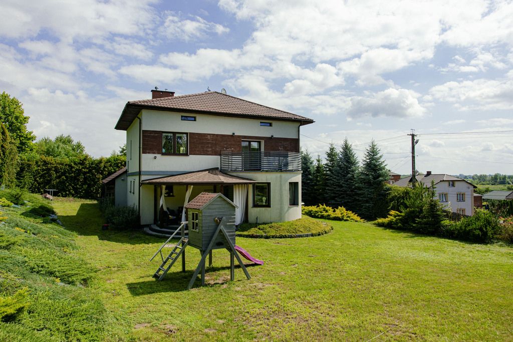 Znajdziesz tu przestronną kuchnię z meblami na wymiar, otwartą na jasny salon z kominkiem, w którym wieczory nabierają wyjątkowego klimatu. Dwie komfortowe łazienki, przytulne pokoje oraz duży taras w zacisznym miejscu ogrodu tworzą idealną przestrzeń dla rodziny.