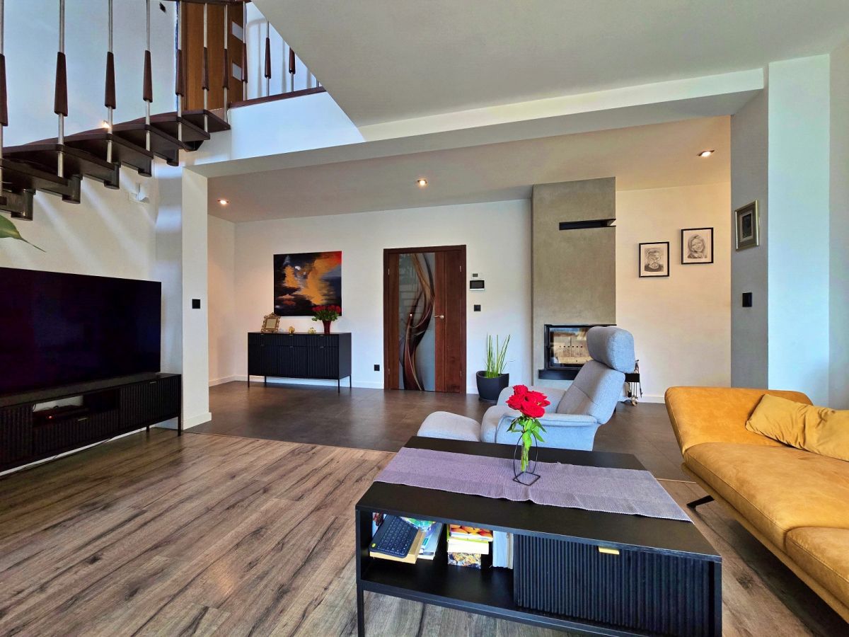 - Przestronny salon z kominkiem - idealny na rodzinne wieczory.