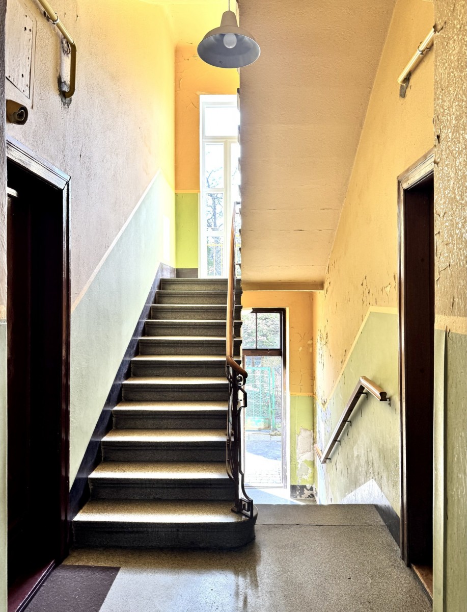 W piwnicy znajduje się również dawne pomieszczenie mieszkalne, a przestrzeń strychu stwarza możliwość wydzielenia kolejnego lokalu. Kamienica pozwala zatem na uzyskanie układu 8-9 mieszkań po adaptacji.