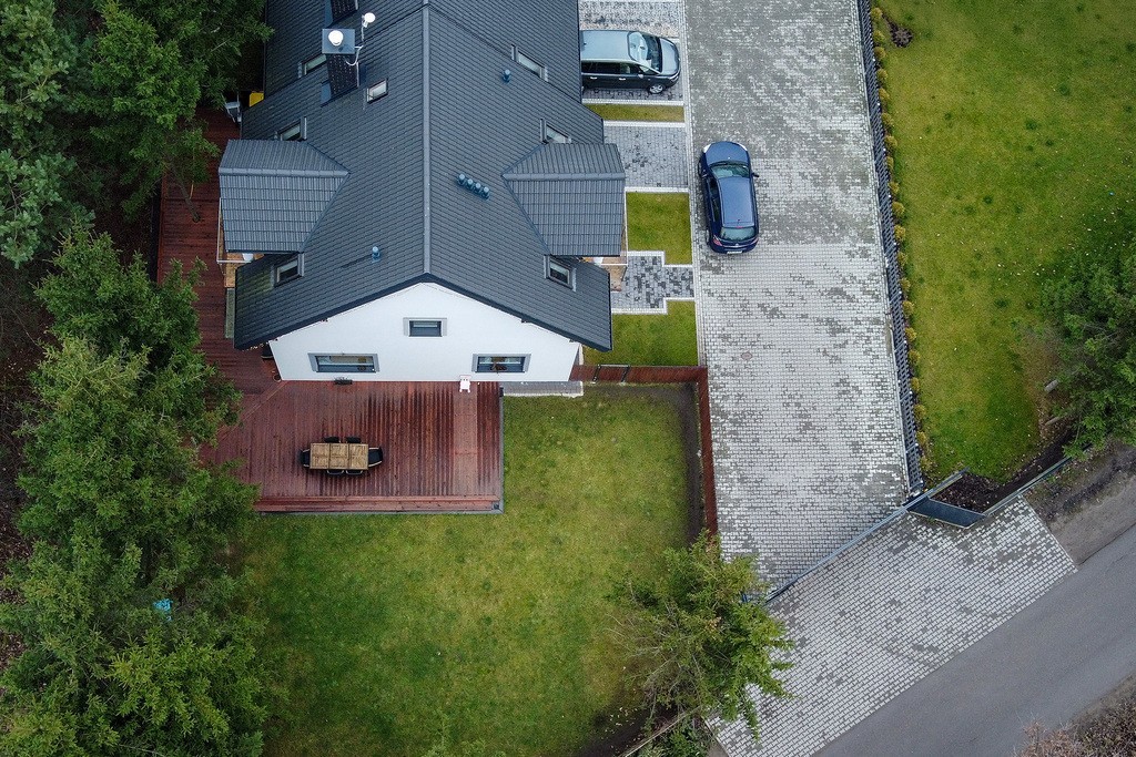 - 2 bramy wjazdowe – jedna prowadzi wprost do lasu (idealne miejsce na spacery i wybieganie dla psów)