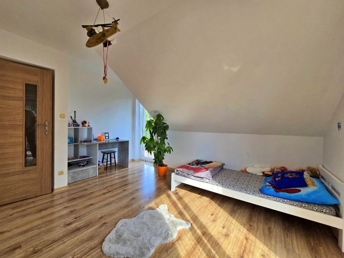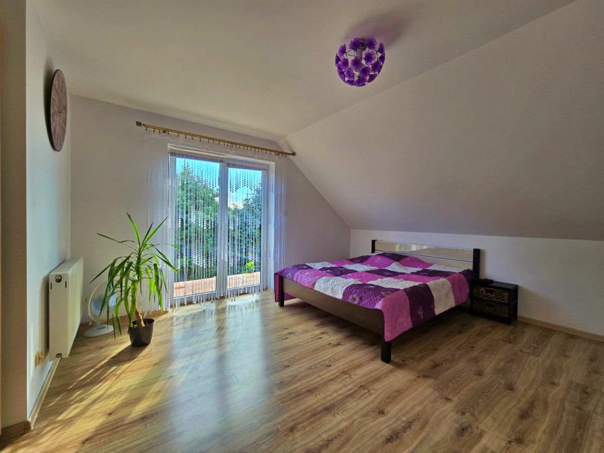 Nowoczesny, dwukondygnacyjny dom z 2012 roku, położony w cichej i spokojnej okolicy wśród zabudowy jednorodzinnej. Budynek z pustaków MAX, ocieplony styropianem, z poddaszem do adaptacji - idealny dla rodziny.