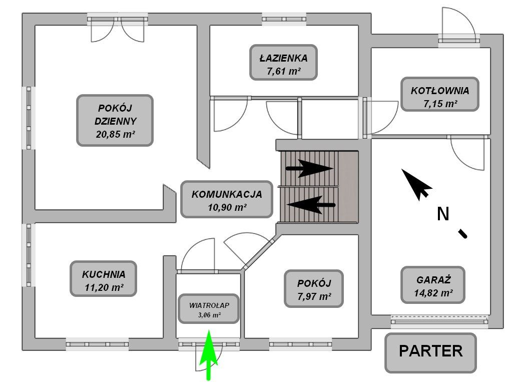 - Działka: 800 m² (ogrodzona z trzech stron)