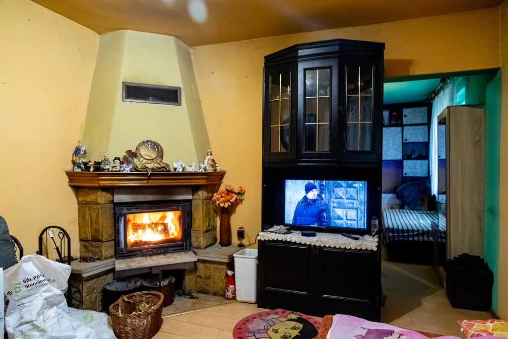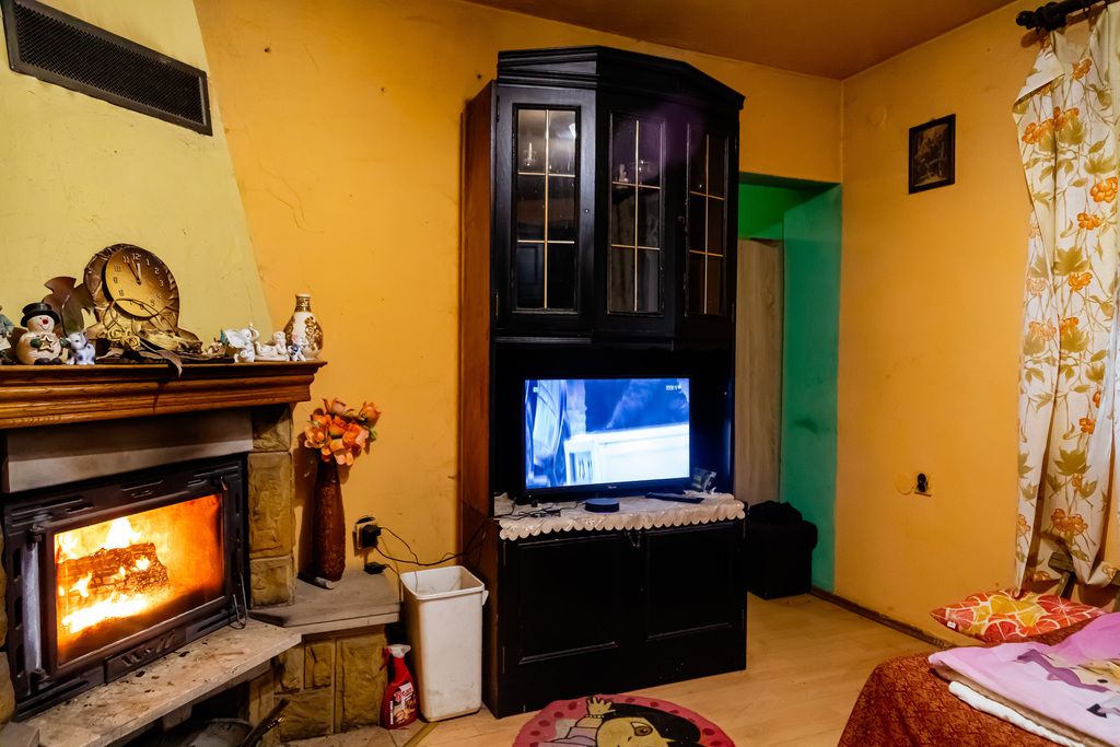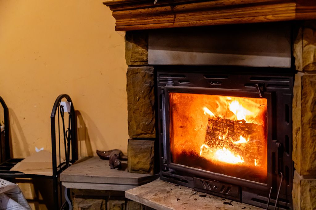 Ogrzewanie domu realizowane jest za pomocą kominka, który stanowi główne źródło ciepła, zapewniając komfort oraz wyjątkową atmosferę wnętrz.