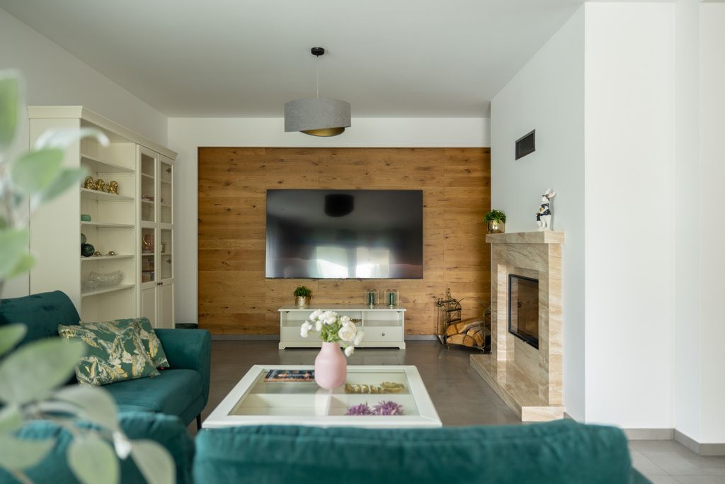 - kominek w salonie