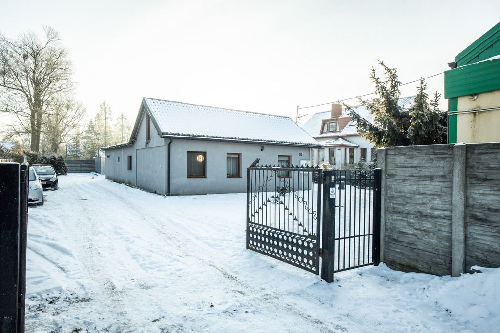 Na przestronnej, płaskiej działce o powierzchni 1256 m² znajduje się parterowy dom drewniany o powierzchni 83 m² z lat 60., który dziesięć lat temu przeszedł gruntowny remont.