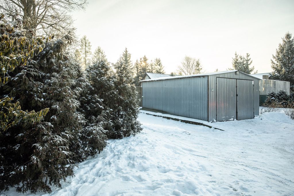Dodatkową wartością są zabudowania gospodarcze — wolnostojący garaż, kotłownia oraz komórka zwiększają funkcjonalność przestrzeni i oferują dodatkowe możliwości przechowywania.